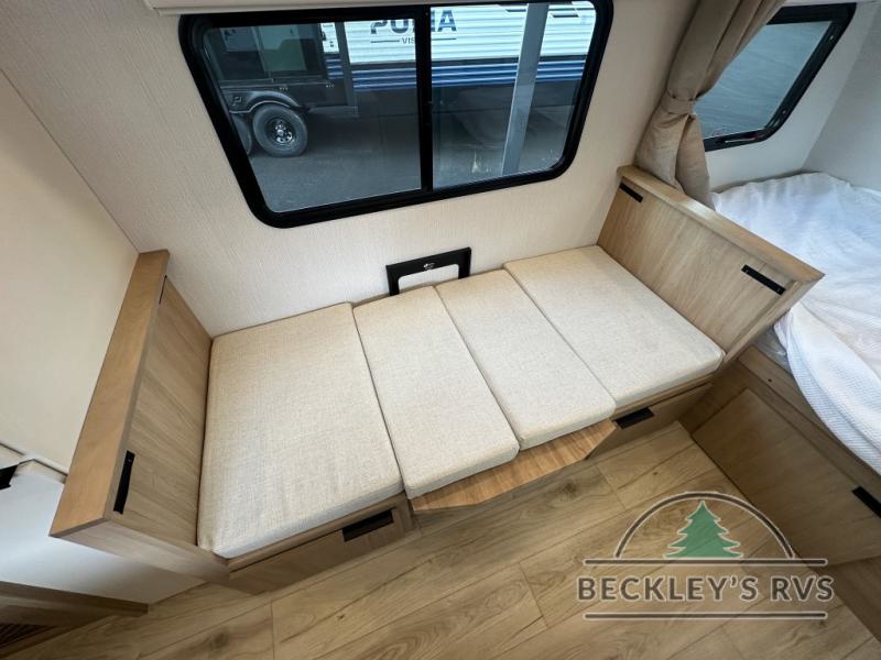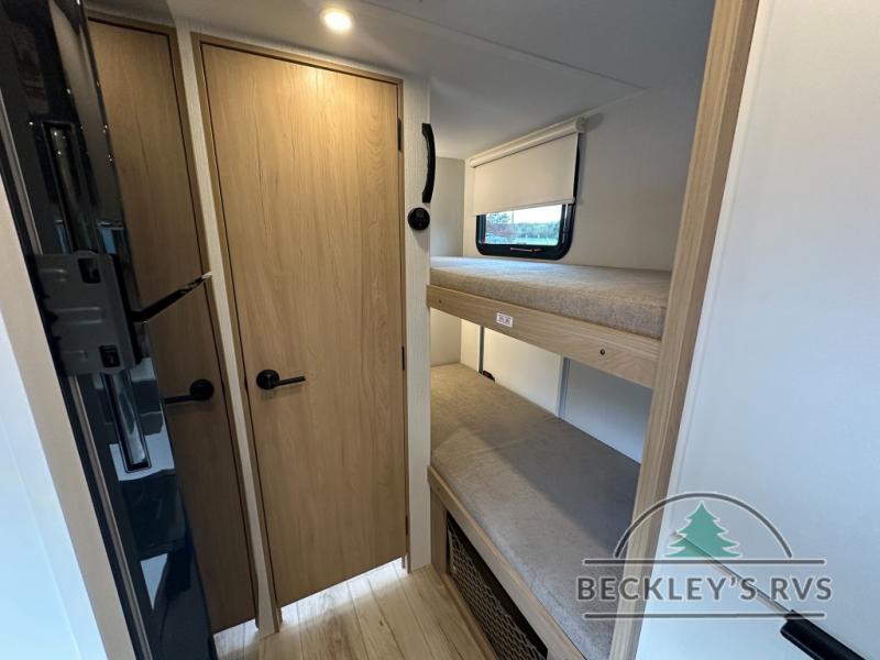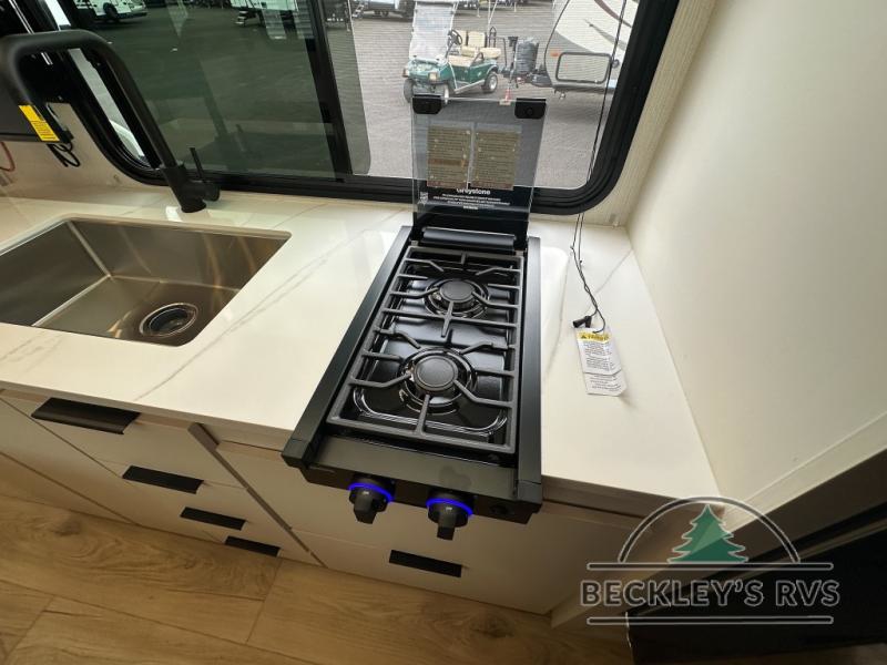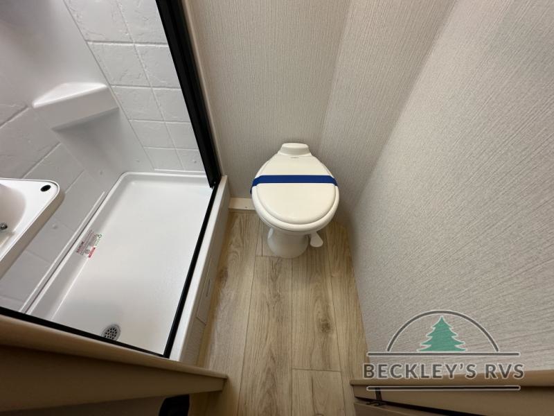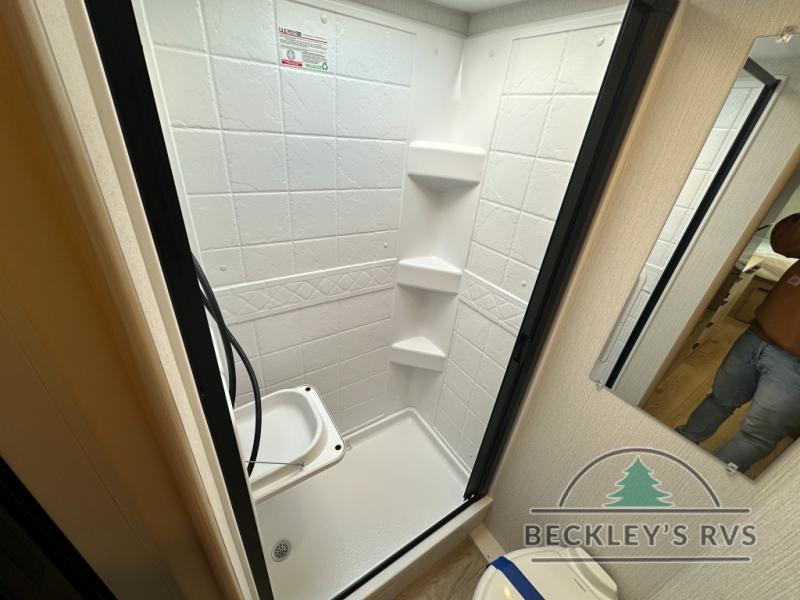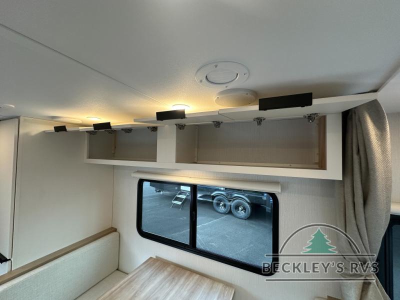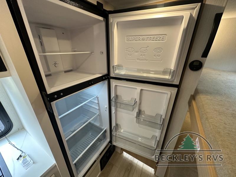 Pack your bags and load up the kids to head out on a great camping adventure as a family! There is a front 54" x 74" full-size bed for you and a set of rear corner bunk beds for the kids, plus they can bring a friend to sleep on the 32" x 74" booth dinette. You can prepare meals for the whole group with the three burner cooktop and the 10.3 cu. ft. 12V refrigerator, plus you can pop a bag of popcorn in the microwave for movie night with the Smart TV. And a private toilet and 24" x 36" shower next to the bunks and offers a great place to get ready for the day or bedtime.