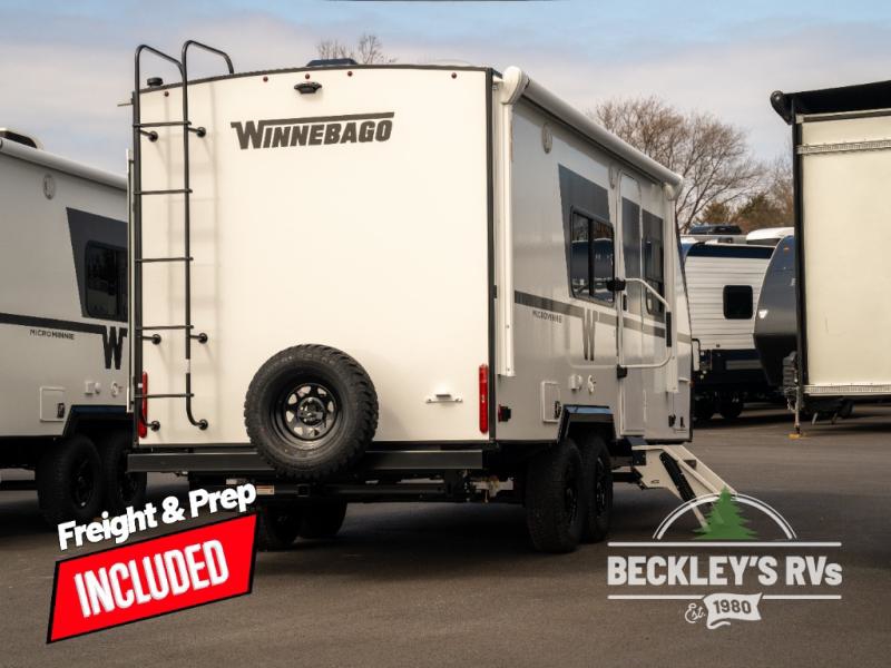 Start out on your boundless journey in one of these Winnebago Micro Minnie travel trailers! Towing is made simple with the 7' width to keep your Micro Minnie in your rear-view mirror, and even though they are compact in size, they aren't lacking in features. Each one is built with an NXG frame and fiberglass sidewalls with Azdel Onboard composite panels for added durability, plus dual Dexter TORFLEX torsion axles for smooth towing. There are also Goodyear Wrangle tires, power stabilizer jacks, a fully walkable roof and many more exterior conveniences. A 200-watt solar panel and Winnebago all-in-one control panel will provide off-grid capabilities and let you stay in control of your trailer's functions. Inside, you'll enjoy the flush mount ceiling lights, full-overlay European-style cabinetry, and JBL premium sound interior speakers, plus there is a tankless water heater to ensure your comfort!