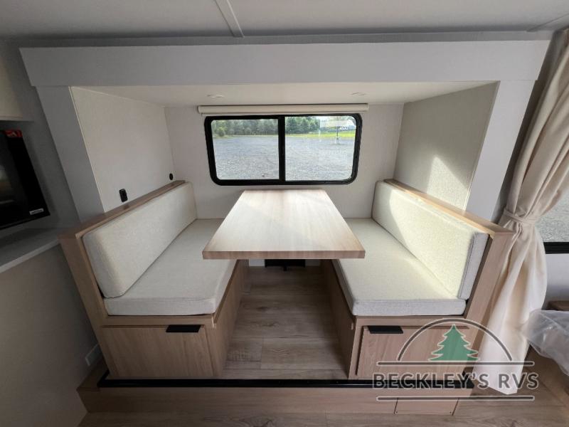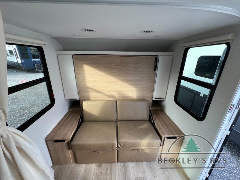 If you're looking for versatility then you need this travel trailer! Depending on the time of day you enter will determine whether you see the Murphy bed or the sofa up front. A slide out 44" x 72" booth dinette can be used for dining, playing games, and sleeping space at night. The full rear bathroom is equipped with everything you will need to freshen up each morning and features a wardrobe for your clothing and linens, and a pocket door into the bath saves space in the main room. The Smart TV is conveniently located so you can watch your favorite shows from the sofa or Murphy bed as well as the dinette, plus the pantry offers a place to store your snacks and such for easy access. The cook in your bunch will love all the amenities to make meals including the handy flip-up counter for more prep space.