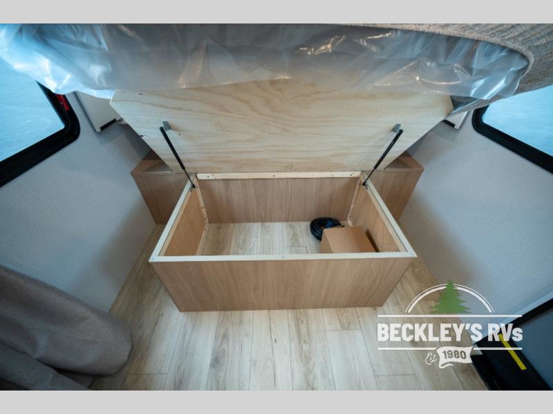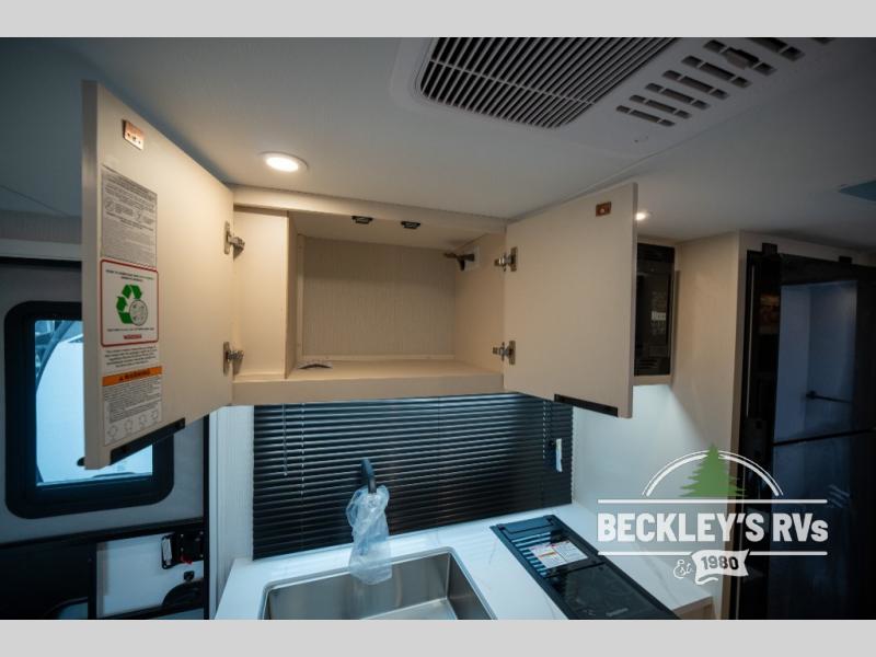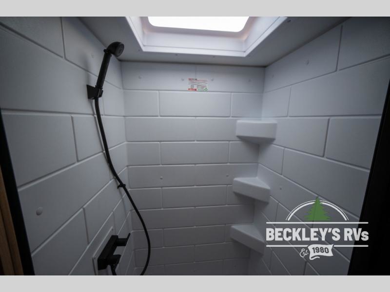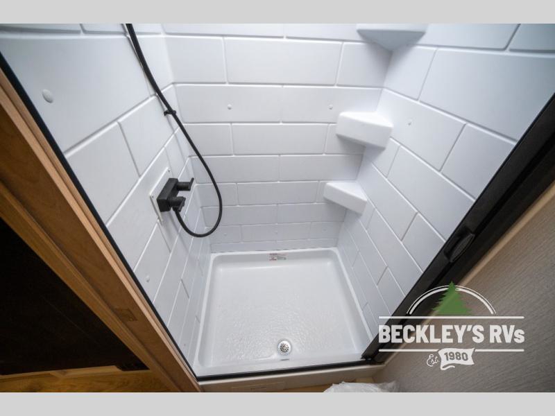 Pack your bags and head to the campground with this travel trailer! You will love all that it has to offer from the full rear bathroom to the front 60" x 74" RV queen-size bed with dual wardrobes on either side of the bed. The 44" x 72" booth dinette slide is not only a great place to enjoy your meals at or play card games, but it can also be transformed into an extra sleeping space if you want to bring along a guest. When you don't feel like making dinner, you can easily pop in some leftovers or a bag of popcorn into the convection microwave and relax while you watch a movie on the Smart TV!