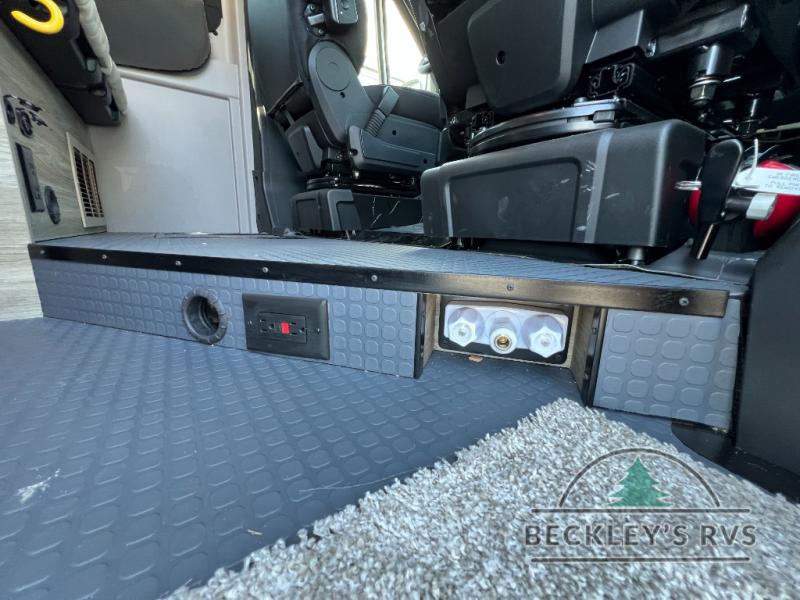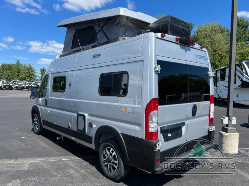 Each Solis Class B gas motorhome by Winnebago sits upon a fuel-efficient Ram ProMaster chassis with a 3.6L V6 engine to power your adventures. You will love the cab conveniences that make each trip enjoyable, like the radio/review monitor system touchscreen and the crosswind assist to keep you steady on the road. Some of the hassle-free amenities you will appreciate are the exterior wash station, the Eco-Hot water system, and the water center control panel located inside the right rear door. Head indoors to find heavy-duty vinyl flooring throughout, a laminate countertop and a stainless steel sink in the galley, plus tinted coach windows for added privacy. The Solis also features off-grid capabilities with its two deep-cycle Group 31 batteries and 220-watt flexible surface solar panel with a controller. Adventures awaits in the Solis Class B gas motorhome!