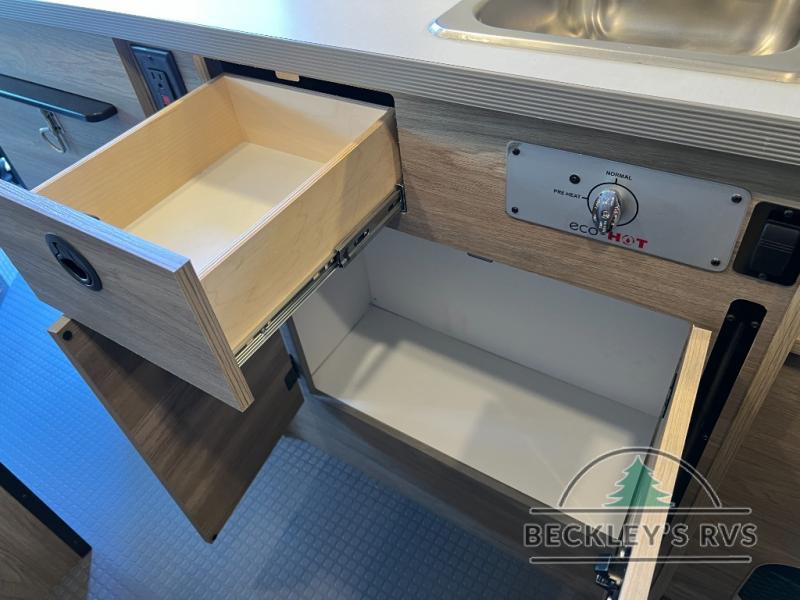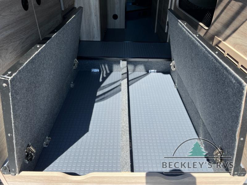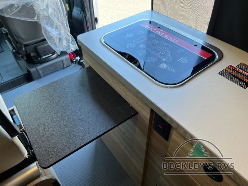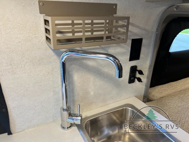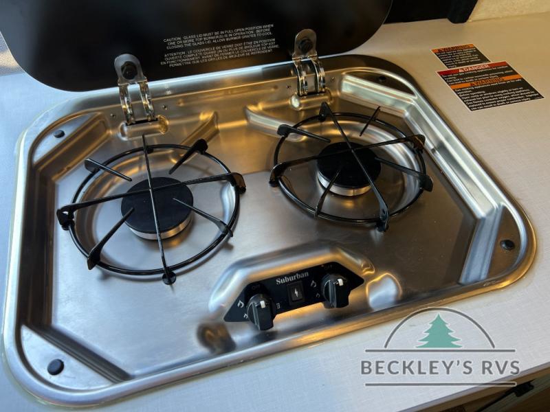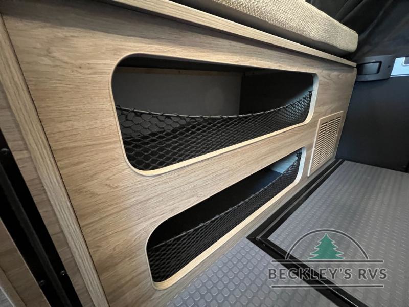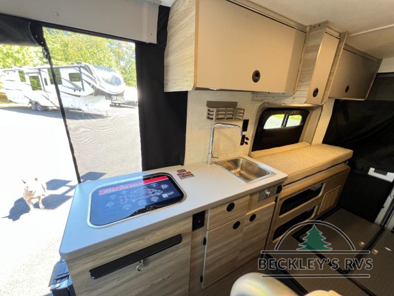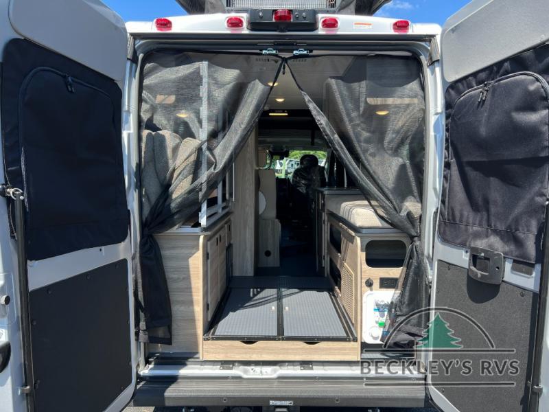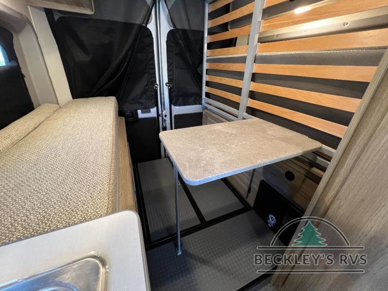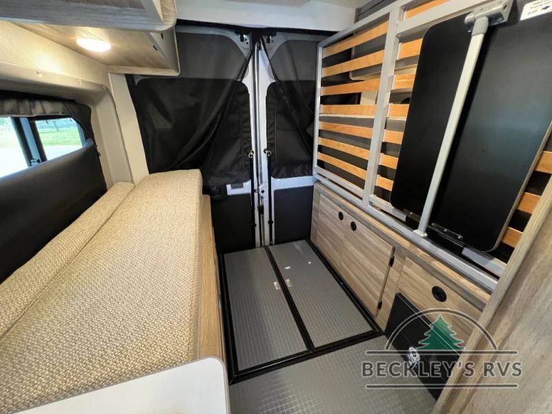 Enjoy a weekend ride in the mountains or make it an overnight stay with versatile sleeping options in this camper van. You'll find the Murphy+ bed in the back will provide a great night's rest, or you can choose the optional sofa/bed with added belted seating if you have more tag-alongs. And of course the little ones will love the pop-top sleeping area to climb into each night. After you've freshened up in the convenient wet bath, prepare breakfast on the two burner range, and the milk and eggs can go back in the 3.0 cu. ft. single door refrigerator/freezer. This model also includes rear double doors with screens to let the breeze in and keep bugs out!