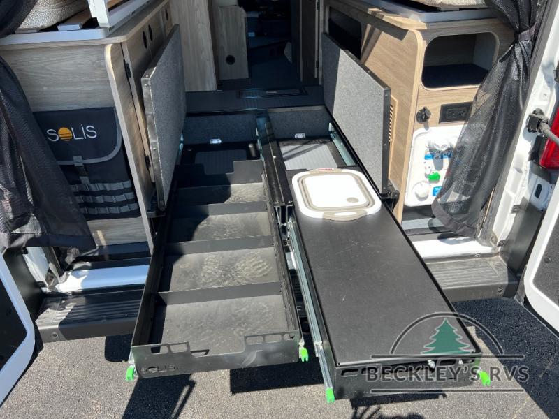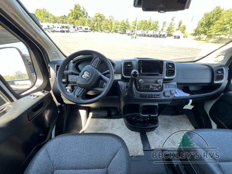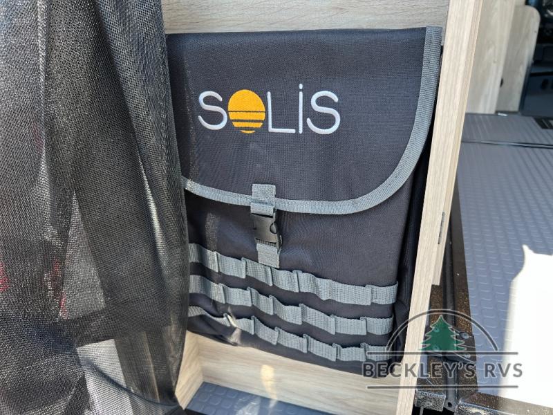 Each Solis Class B gas motorhome by Winnebago sits upon a fuel-efficient Ram ProMaster chassis with a 3.6L V6 engine to power your adventures. You will love the cab conveniences that make each trip enjoyable, like the radio/review monitor system touchscreen and the crosswind assist to keep you steady on the road. Some of the hassle-free amenities you will appreciate are the exterior wash station, the Eco-Hot water system, and the water center control panel located inside the right rear door. Head indoors to find heavy-duty vinyl flooring throughout, a laminate countertop and a stainless steel sink in the galley, plus tinted coach windows for added privacy. The Solis also features off-grid capabilities with its two deep-cycle Group 31 batteries and 220-watt flexible surface solar panel with a controller. Adventures awaits in the Solis Class B gas motorhome!