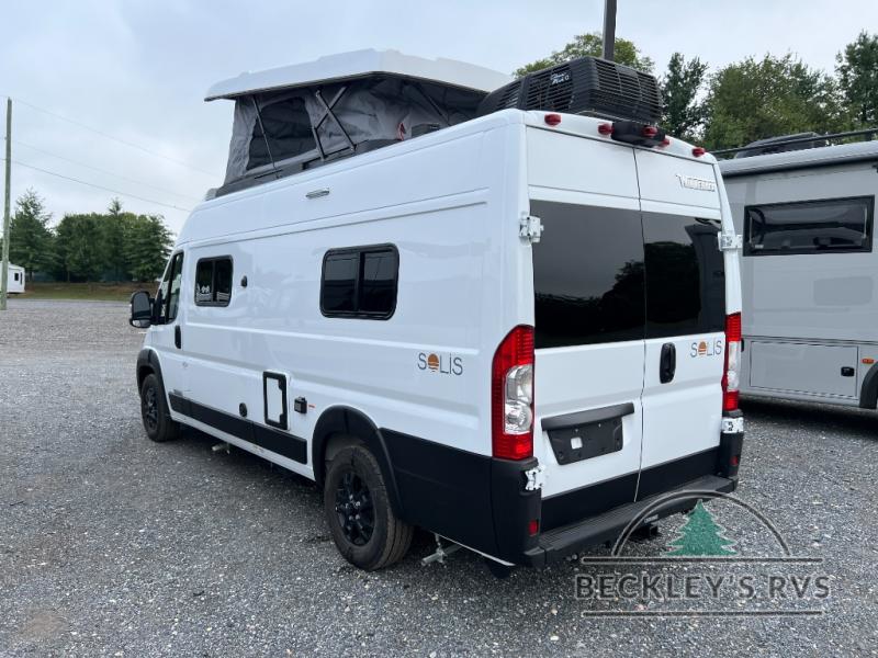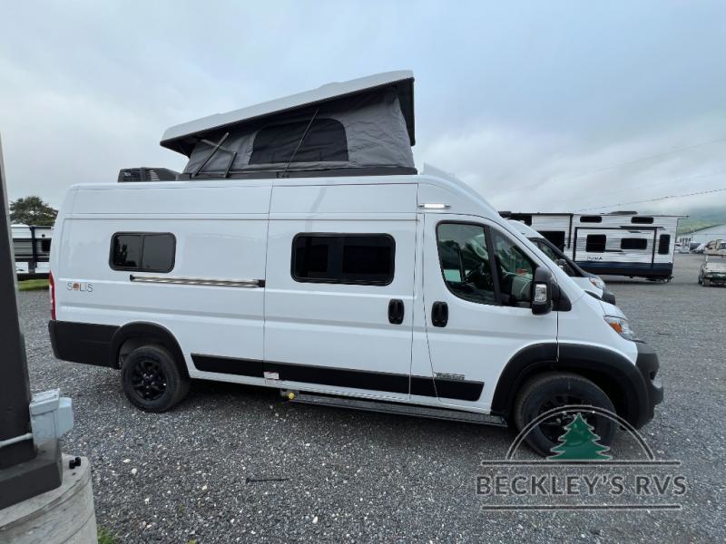 Each Solis Class B gas motorhome by Winnebago sits upon a fuel-efficient Ram ProMaster chassis with a 3.6L V6 engine to power your adventures. You will love the cab conveniences that make each trip enjoyable, like the radio/review monitor system touchscreen and the crosswind assist to keep you steady on the road. Some of the hassle-free amenities you will appreciate are the exterior wash station, the Eco-Hot water system, and the water center control panel located inside the right rear door. Head indoors to find heavy-duty vinyl flooring throughout, a laminate countertop and a stainless steel sink in the galley, plus tinted coach windows for added privacy. The Solis also features off-grid capabilities with its two deep-cycle Group 31 batteries and 220-watt flexible surface solar panel with a controller. Adventures awaits in the Solis Class B gas motorhome!