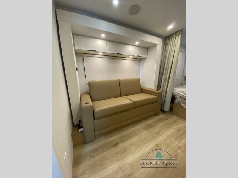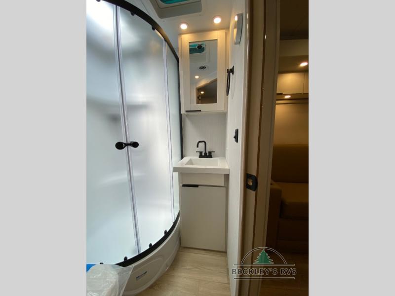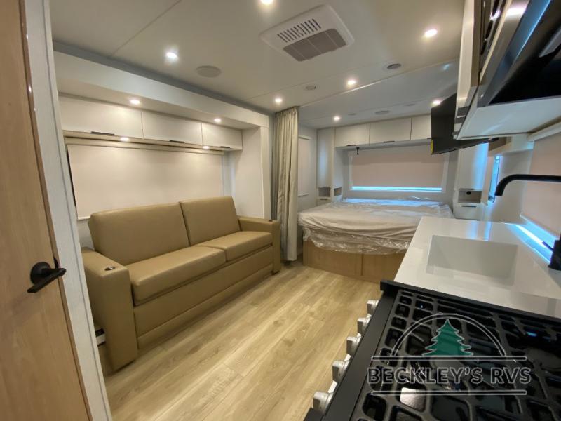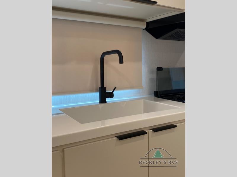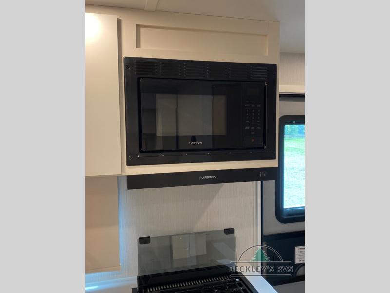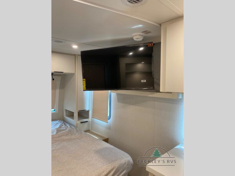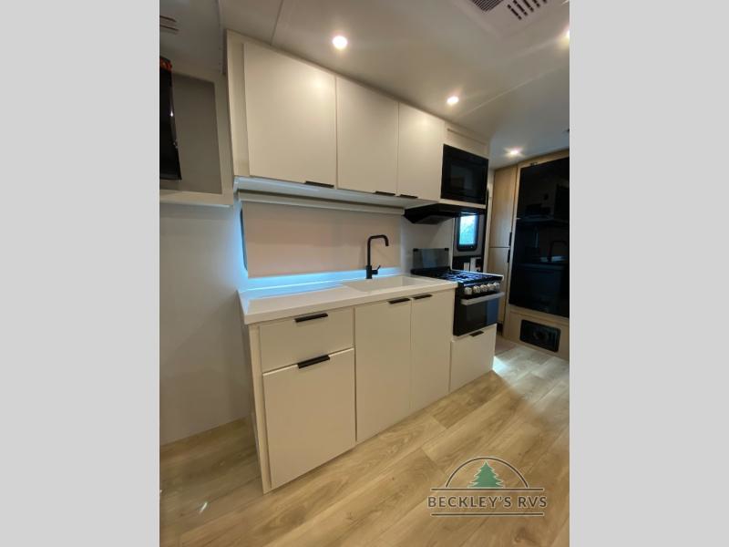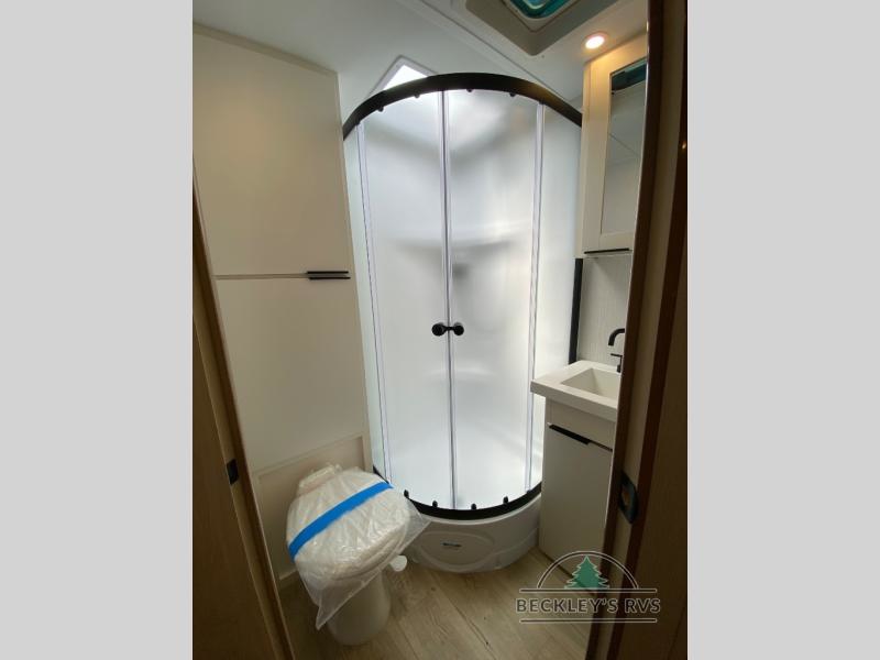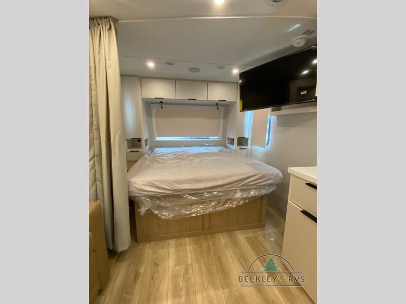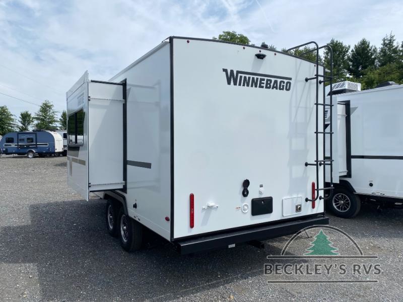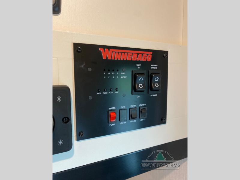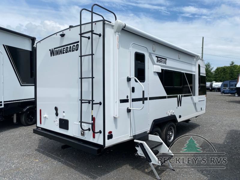 With any Thrive travel trailer by Winnebago, you can camp with functionality, comfort, and convenience! The tinted and frameless front window will be the first thing that catches your eye, and the fiberglass sidewalls with Azdel Onboard provide a durable trailer made to last. There is also an exterior ladder, along with front radius profile lights, power stabilizer jacks, and a powered awning with LED lighting to name a few exterior features. You will stay powered up by the 30-amp power cord and 200-watt solar panel, plus there is a tankless water heater for endless hot showers. Inside, you'll love the custom Winnebago furniture, carpetless side outs, molded fiberglass countertops, and residential recessed ceiling lights to keep your space well lit!