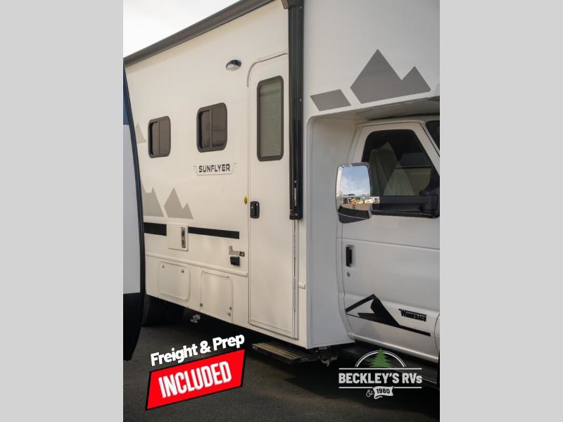 With any Winnebago Sunflyer Class C gas motorhome, you get a confident, road-ready build that’s focused on real-world travel ease and long-term durability. Standard highlights across the lineup include a Ford chassis, an 8,000 lb. trailer hitch, 4-wheel ABS brakes, LED high-performance headlamps, a 7-pin trailer wiring harness connector, premium high-gloss fiberglass skin, a molded front cap, a powered patio awning with LED lighting, and solar prep. The result is a Class C that feels composed on the highway and effortless at the campsite, with the kind of practical exterior and chassis-minded upgrades that make every trip smoother before you even step inside.