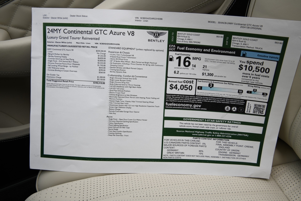 2024 Bentley Continental GTC Azure V8 Convertible