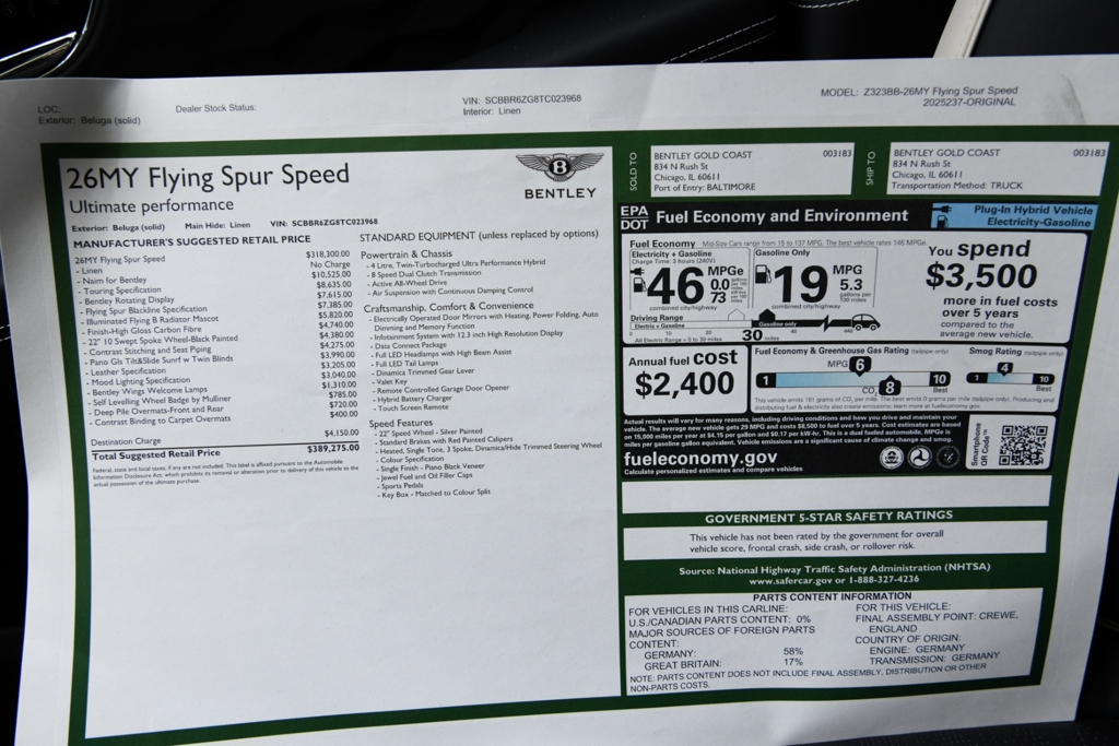 2026 Bentley Flying Spur Speed 4.0L Plug-in Hybrid Twin Turbo V8 771hp 738ft. lbs