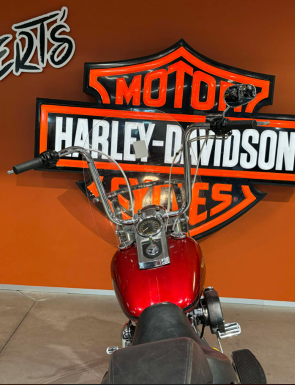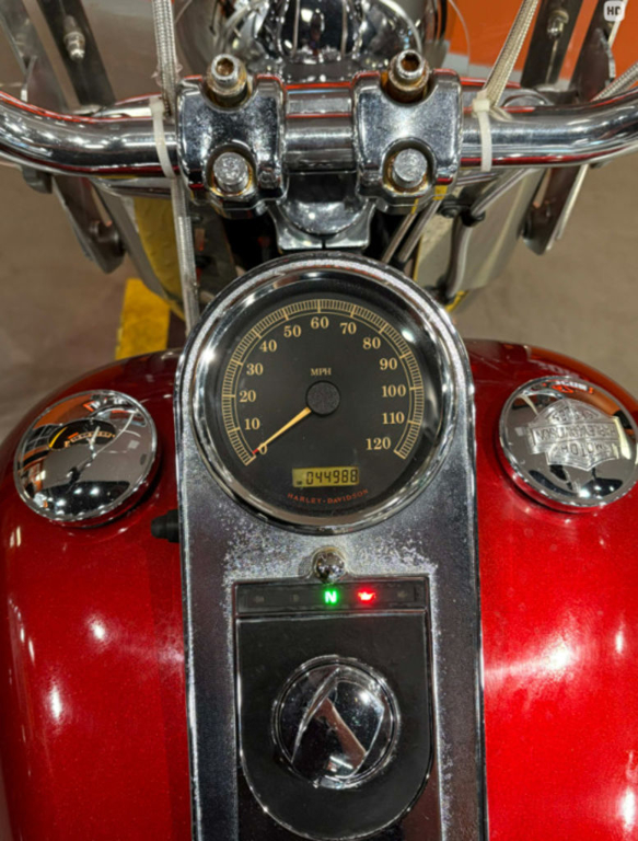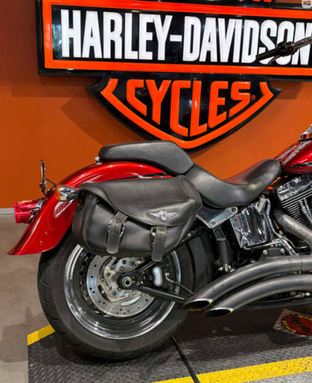 One of the most recognizable motorcycles on the road, the FLSTF Fat Boy® defines Harley-Davidson® for many people. Still going strong after 18 years and as massive as it is iconic, the Fat Boy® rolls on a 200 mm rear tire and chopped FL rear fender. Laced leather and bullet studs trim the two-up seat and tank strap.