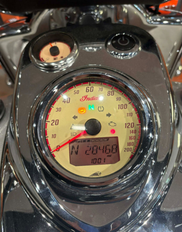 Chrome highway bars and hand controls. Chromed-out engine. And the iconic illuminated chrome Indian Motorcycle headdress.