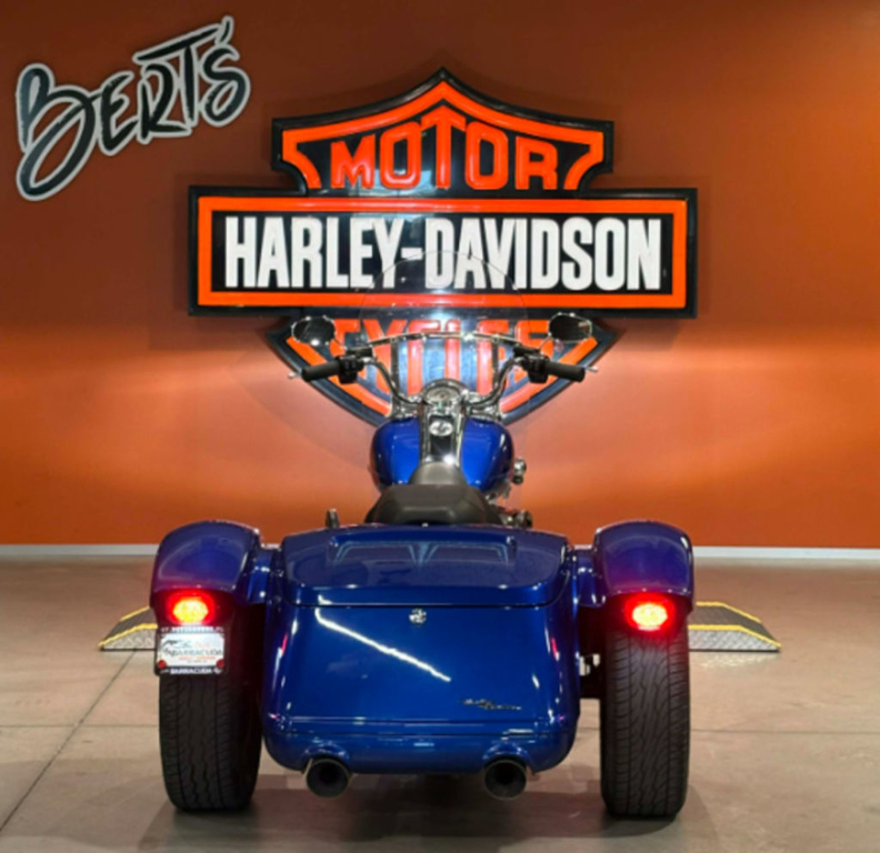 Stripped-down custom style meets the confidence of three wheels. You get all-new braking enhancements like ABS, traction control and hill hold. As well as plenty of power, thanks to a Milwaukee-Eight® 114 engine.