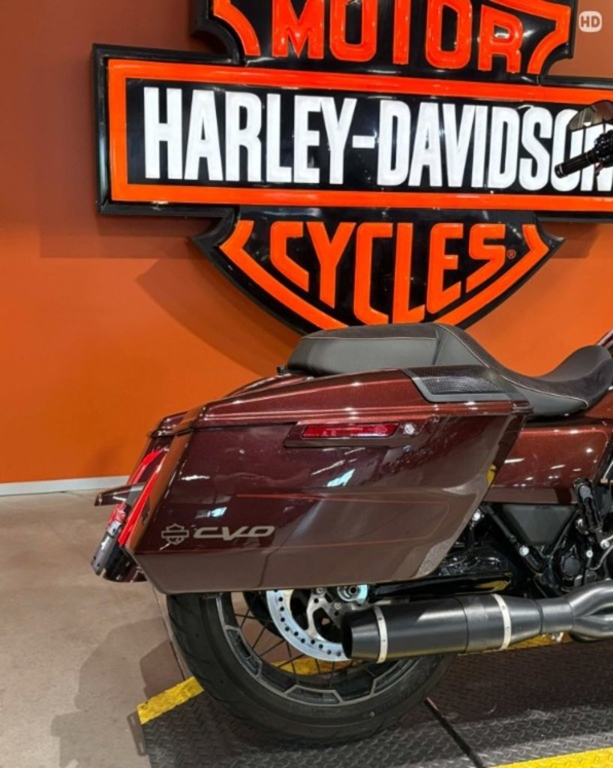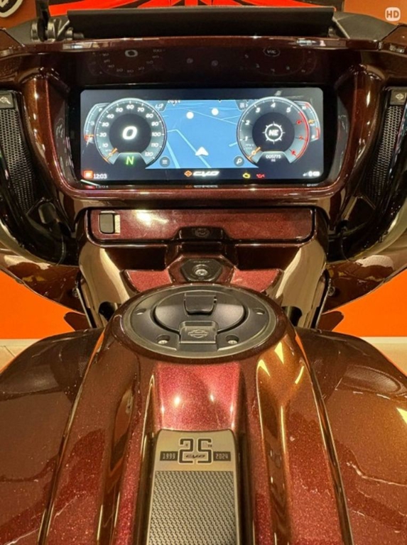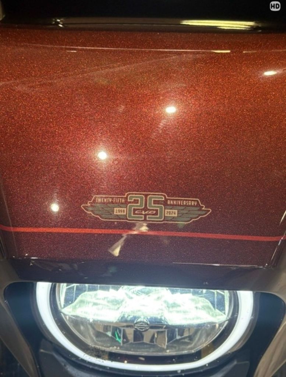 Available in color-shifting Copperhead with Warm-Shift pinstripes or Legendary Orange with Raven Metallic and Atlas Silver brushed sections. Each option is finished with color-matched parts and accessories, CVO graphics, and an engraved CVO 25th Anniversary console insert.