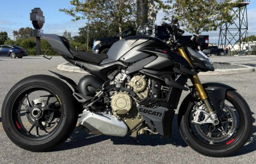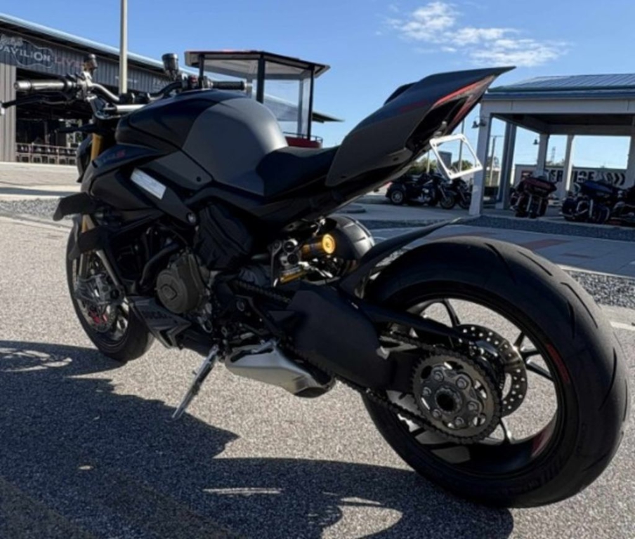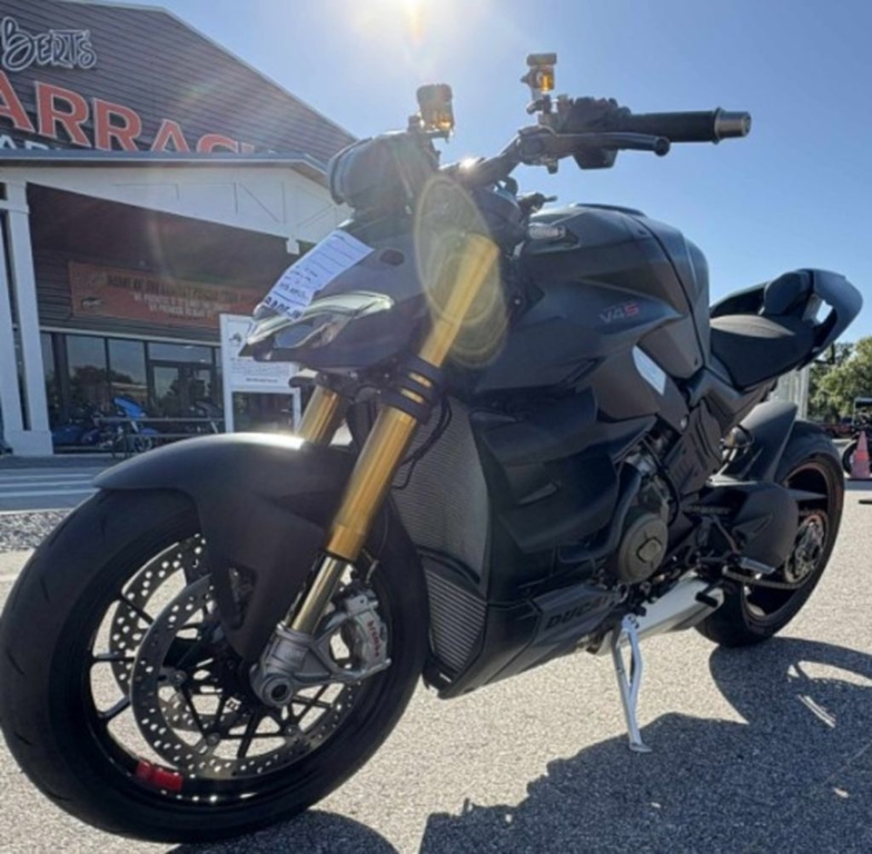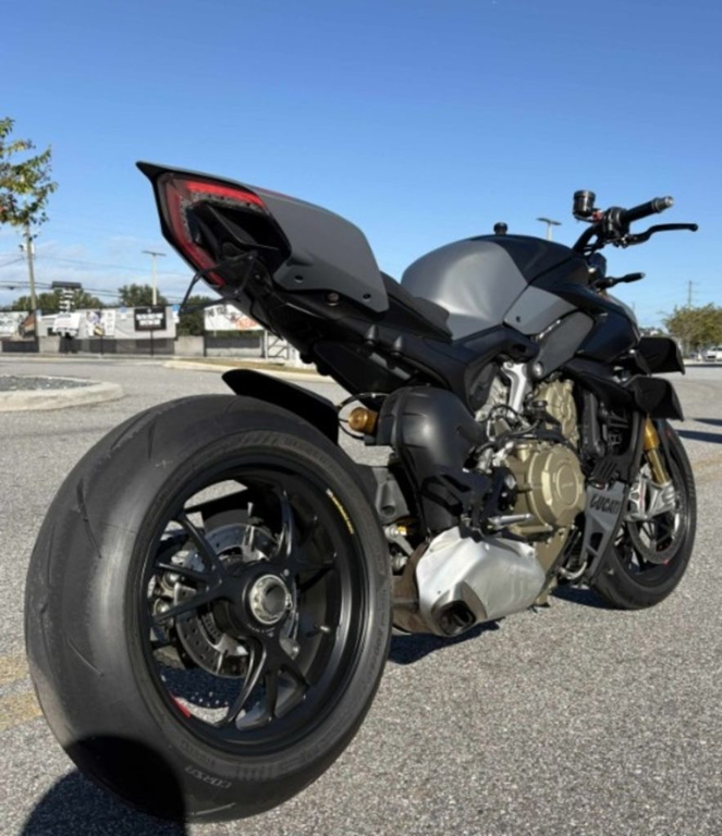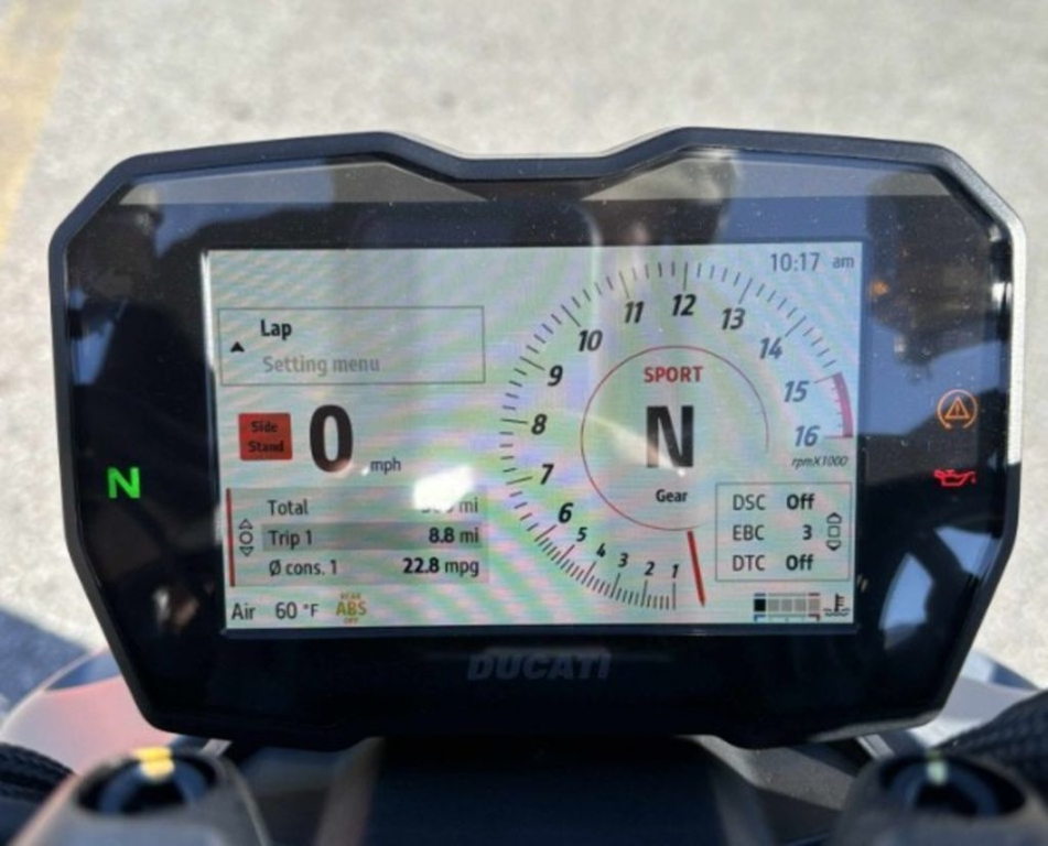 The natural evolution of the family is a bike that pushes the concepts of the "Fight Formula" even further, the key elements of which are the Panigale V4 stripped of the fairings, high and wide handlebars, 392 lb weight, 208 hp Desmosedici Stradale engine, biplane wings and latest generation electronic package.