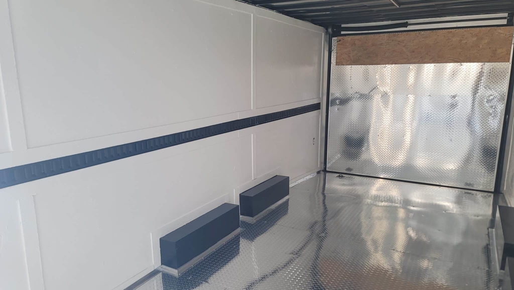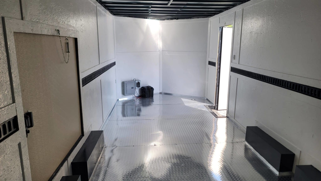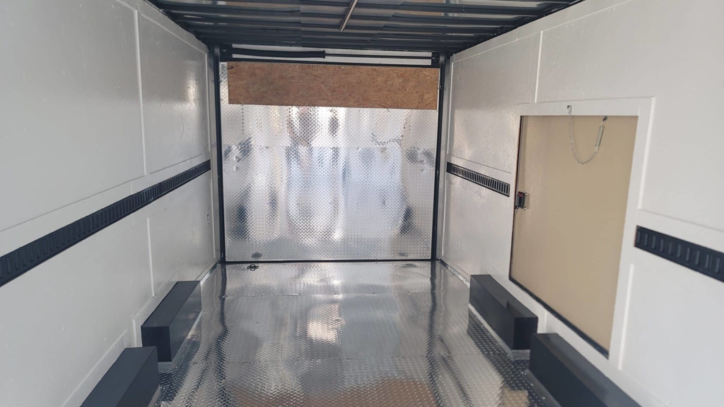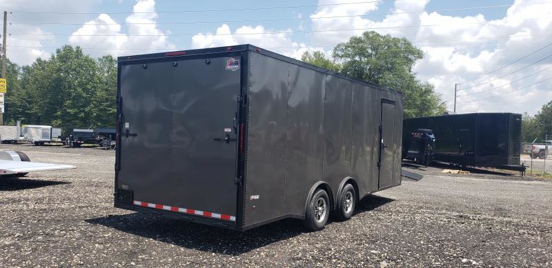 Enclosed 8X22 Freedom Trailers 8.5×22 Carhauler Black out Escape Door Spread axle ramp door