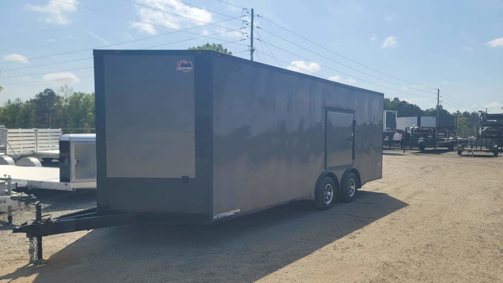 πŸ’₯ Welcome to Best Trailers & Supply – Your Ultimate Trailer Destination! πŸ’₯ πŸ“ Location: Byron, GA πŸ‘ πŸ“ž Call us at 478.654.5350 for Expert Advice and Unbeatable Deals! πŸ†“ Don’t Miss Out! Get a FREE White Wheel Spare Tire when you Pay Cash at Pick Up! πŸ†“ 22′ Enclosed Charcoal Blackout 10K Car Hauler The 22′ Enclosed Charcoal Blackout 10K Car Hauler offers a sleek, stylish design with the blackout package and premium features, making it one of the most popular choices for car hauling. Ideal for transporting cars, motorcycles, and more, this trailer provides a spacious interior and advanced options like spread axles and a driver’s side escape door. Upgrades & Key Features Blackout Package: Includes blackout trim and mag wheels for a custom, professional look Semi-Screwless Exterior: Smooth, clean exterior with fewer visible fasteners Tube Walls: Added strength and durability Radial Tires: For better road grip and reliability Electric Package: 50 AMP electric package for high-power needs Motorbase plug & lifeline for easy power connection 12V battery & box for on-the-go power Wired and braced for A/C for future air conditioning installation E-Trac on walls for secure cargo tie-down options Spread Axle Package: 5,200 lb. torsion axles for smooth towing Driver’s Side Escape Door: Provides easy access to the trailer’s interior Standard Features V-Nose Design: Adds 2′ to the interior space for more cargo room Frame & Structure: 16″ O.C. cross members for strong support 6″ steel I-beam main frame for added durability 24″ O.C. roof members for stable overhead support Axles & Tires: ST205 15″ steel-belted tires Electric brakes & E-Z Lube hubs for maintenance ease Roof & Ventilation: 1-piece aluminum roof for leak protection Non-powered roof vent for proper airflow Interior & Doors: 78″ interior height for ample headroom 3/8″ plywood walls for a solid structure Trimmed ramp & 16″ flap for easy loading 36″ side door with safety chains for access Lightin LED light package for energy-efficient illumination Other Features: 24″ ATP stone guard & J-rail for added protection 2-5/16″ coupler for secure towing 2K jack & sand foot for easy maneuvering Deluxe tag bracket for a clean finish Perfect for Car Hauling & Transport This 22′ enclosed car hauler is built to handle heavy-duty hauling while offering a premium aesthetic with its blackout trim and mag wheels. Designed to meet the needs of automotive enthusiasts, car dealers, or transport services, it ensures your vehicles and equipment are securely transported in style. πŸ“ž Call us today for pricing and availability! 🚚 Delivery Available at $2 per Loaded Mile! 🚚 πŸ“ž For any questions, concerns, or info on this trailer, don’t hesitate to call our dedicated sales team at 478.654.5350! πŸ“ Visit us at Best Trailers & Supply in Byron, GA or call 478.654.5350 for more information! 🌟