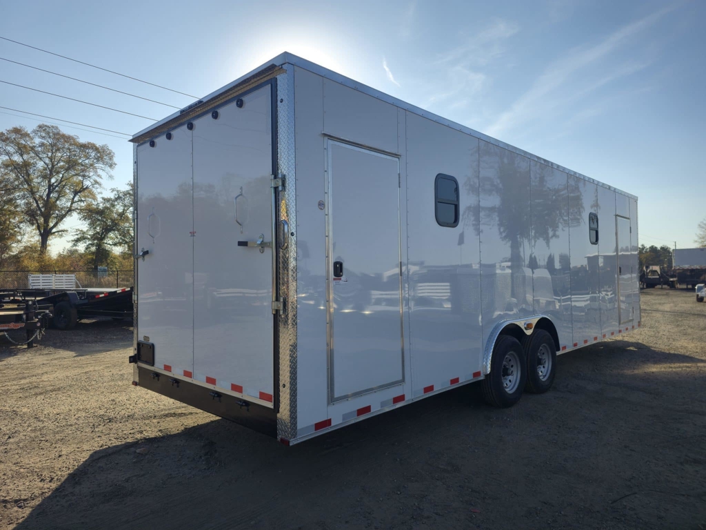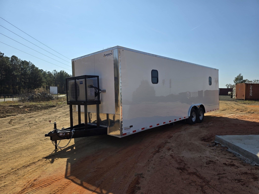 πŸ’₯ Welcome to Best Trailers & Supply – Your Ultimate Trailer Destination! πŸ’₯ πŸ“ Location: Byron, GA πŸ‘ πŸ“ž Call us at 478.654.5350 for Expert Advice and Unbeatable Deals! πŸ†“ Don’t Miss Out! Get a FREE White Wheel Spare Tire when you Pay Cash at Pick Up! πŸ†“ Arising 8.5Γ—28 TA Enclosed Office Trailer β€” Fully Equipped Mobile Workspace This Arising 8.5Γ—28 tandem-axle office trailer is a turnkey mobile workspace built for comfort, durability, and productive on-site operations. Designed with a professional finish and practical systems, it’s ideal for contractors, event teams, jobsite managers, and anyone who needs a reliable office on the road. Key Features & Construction Size: 8.5β€² wide Γ— 28β€² long (tandem axle) Interior height: 7β€²6β€³ β€” comfortable standing room throughout Walls & ceilin White metal finish for a bright, clean interior that’s easy to maintain Floorin Rubber treadplate β€” durable, slip-resistant, and easy to clean Insulation: Fully insulated walls and ceiling for temperature control and noise reduction Electrical: 50-amp electrical package β€” supports heavy loads, appliances, and equipment Climate control: (2) 18,000 BTU mini-split AC units β€” one front and one rear for balanced cooling/heating Windows: (4) 15β€³ Γ— 18β€³ windows for natural light and ventilation Interior layout: Partition wall mid-trailer with walk-through door to create separate office and work/storage zones Bathroom: 1/2 bath with sink and toilet package for on-site convenience Access & loadin Rear ramp door for equipment access and easy loading/unloading Chassis & suspension: Tandem 5,200 lb leaf spring axles for stable towing and dependable load capacity Why This Trailer Works This unit combines the convenience of a fully finished office with the toughness of a work trailer. The dual mini-split AC units and full insulation keep the interior comfortable in all seasons, while the 50-amp electrical package lets you run tools, lighting, and office equipment without compromise. A mid-trailer partition creates dedicated workspace and storage, and the rear ramp allows you to bring in larger items or gear when needed. The rubber treadplate flooring and white metal interior make cleanup fast and keep the space looking professional. Ideal For Jobsite offices and project managers Mobile sales or command centers Event support and concession operations that need an office/clean prep area Contractors who want a climate-controlled breakroom and workspace on location 🚚 Delivery Available at $2 per Loaded Mile! 🚚 πŸ“ž For any questions, concerns, or info on this trailer, don’t hesitate to call our dedicated sales team at 478.654.5350! πŸ“ Visit us at Best Trailers & Supply in Byron, GA or call 478.654.5350 for more information! 🌟