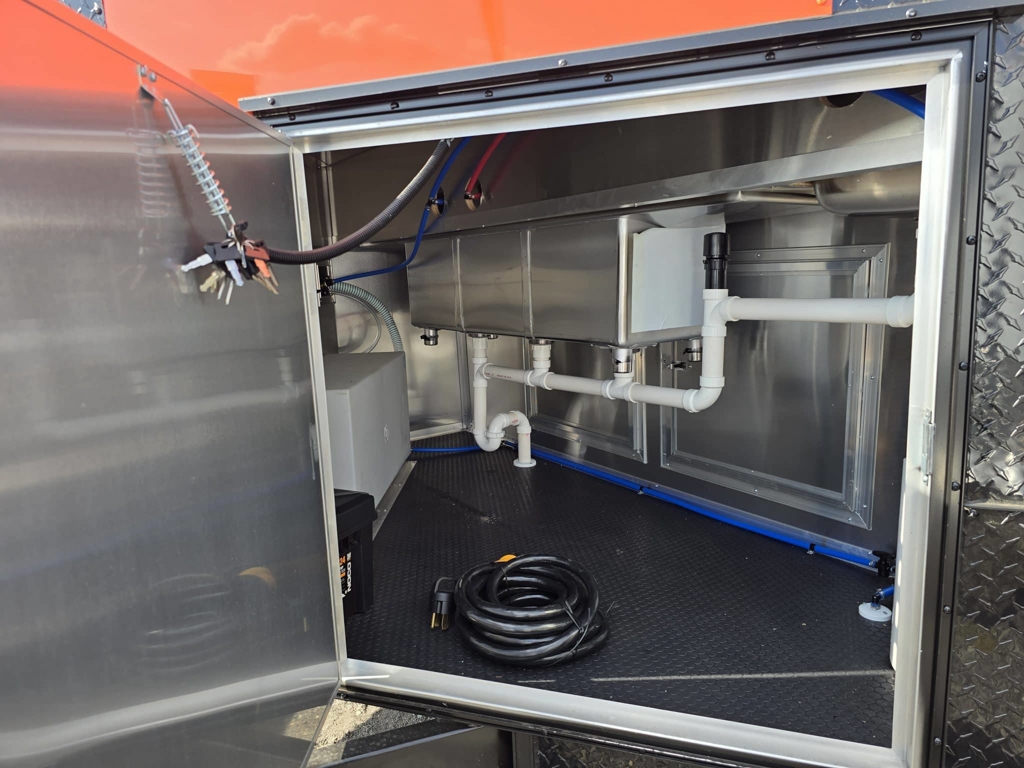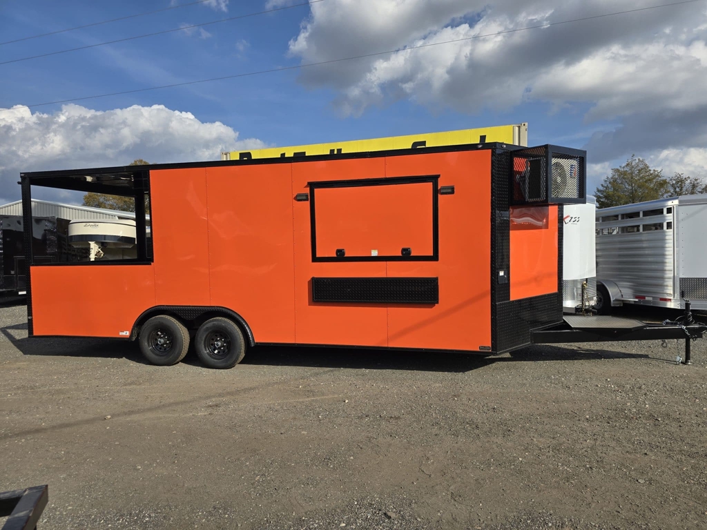 💥 Welcome to Best Trailers & Supply – Your Ultimate Trailer Destination! 💥 📍 Location: Byron, GA 🍑 📞 Call us at 478.654.5350 for Expert Advice and Unbeatable Deals! 🆓 Don’t Miss Out! Get a FREE White Wheel Spare Tire when you Pay Cash at Pick Up! 🆓 CP8.522 TAV-FI-50EP-AC-SINKS-BO (080Orange) — Concession Porch Trailer This 8.5×22 Empire Cargo concession porch trailer is built for serious food service and mobile vending. With a durable all-steel construction, upgraded electrical system, and a thoughtfully designed interior layout, it’s ready to support a wide range of business setups—from BBQ operations to festival vending and mobile kitchens. Interior & Construction Features:• Mill-finish aluminum walls and ceiling for a clean, low-maintenance workspace• Durable rubber coin flooring throughout for traction and easy cleanup• Front sink package mounted in the nose for convenient prep and wash use• 50-amp electrical package to power appliances, lighting, and equipment• Mini-split A/C system to keep the interior cool during long workdays• Insulated walls and ceiling for improved climate control Exterior & Functional Upgrades:• Extended tongue with a generator platform—ready for power on the go• 36″ access door in the V-nose for easy entry and service access• Rear porch area equipped with a knee wall—perfect for smokers, grills, or customer service windows• Blackout trim package for a sleek, modern appearance• 5200-lb leaf spring axles for dependable towing and load handling This concession porch trailer is designed for vendors who need reliability, space, and smooth workflow. Whether you’re serving BBQ, fried foods, drinks, or festival favorites, this trailer provides the layout and equipment foundation to get your business operating efficiently. Stop by and see it in person to explore everything it offers! 🚚 Delivery Available at $2 per Loaded Mile! 🚚 📞 For any questions, concerns, or info on this trailer, don’t hesitate to call our dedicated sales team at 478.654.5350! 📍 Visit us at Best Trailers & Supply in Byron, GA or call 478.654.5350 for more information! 🌟