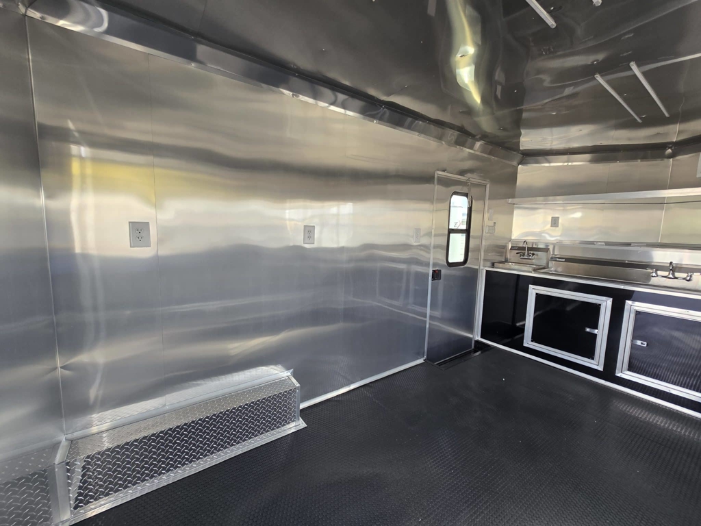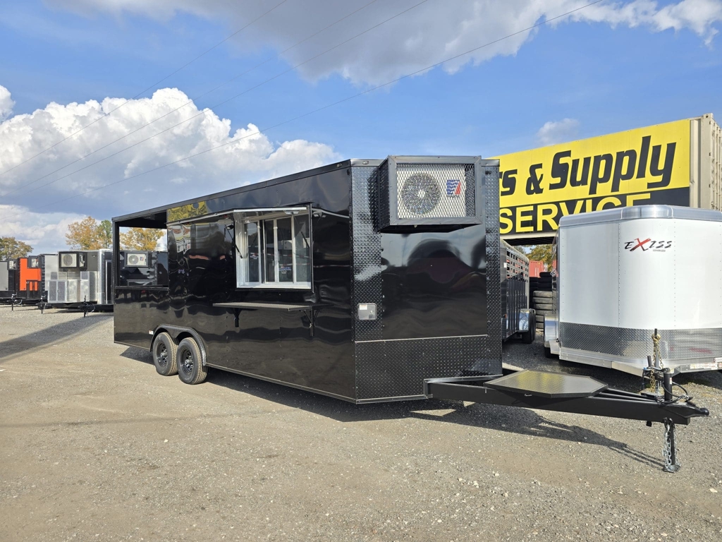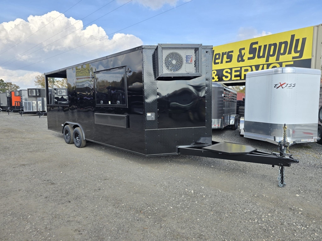 đź’Ą Welcome to Best Trailers & Supply – Your Ultimate Trailer Destination! đź’Ą 📍 Location: Byron, GA 🍑 📞 Call us at 478.654.5350 for Expert Advice and Unbeatable Deals! 🆓 Don’t Miss Out! Get a FREE White Wheel Spare Tire when you Pay Cash at Pick Up! 🆓 CP8.522 TAV-FI-50EP-AC-SINKS-BO (080BLK) — Concession Porch Trailer This 8.5Ă—22 Empire Cargo concession porch trailer is built for serious food service and mobile vending. With a durable all-steel construction, upgraded electrical system, and a thoughtfully designed interior layout, it’s ready to support a wide range of business setups—from BBQ operations to festival vending and mobile kitchens. Interior & Construction Features:• Mill-finish aluminum walls and ceiling for a clean, low-maintenance workspace• Durable rubber coin flooring throughout for traction and easy cleanup• Front sink package mounted in the nose for convenient prep and wash use• 50-amp electrical package to power appliances, lighting, and equipment• Mini-split A/C system to keep the interior cool during long workdays• Insulated walls and ceiling for improved climate control Exterior & Functional Upgrades:• Extended tongue with a generator platform—ready for power on the go• 36″ access door in the V-nose for easy entry and service access• Rear porch area equipped with a knee wall—perfect for smokers, grills, or customer service windows• Blackout trim package for a sleek, modern appearance• 5200-lb leaf spring axles for dependable towing and load handling This concession porch trailer is designed for vendors who need reliability, space, and smooth workflow. Whether you’re serving BBQ, fried foods, drinks, or festival favorites, this trailer provides the layout and equipment foundation to get your business operating efficiently. Stop by and see it in person to explore everything it offers! đźšš Delivery Available at $2 per Loaded Mile! đźšš 📞 For any questions, concerns, or info on this trailer, don’t hesitate to call our dedicated sales team at 478.654.5350! 📍 Visit us at Best Trailers & Supply in Byron, GA or call 478.654.5350 for more information! 🌟