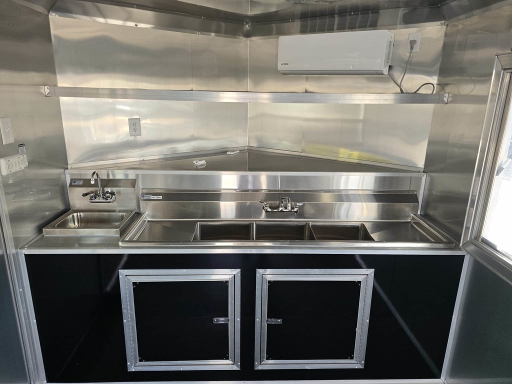 đź’Ą Welcome to Best Trailers & Supply – Your Ultimate Trailer Destination! đź’Ą 📍 Location: Byron, GA 🍑 📞 Call us at 478.654.5350 for Expert Advice and Unbeatable Deals! 🆓 Don’t Miss Out! Get a FREE White Wheel Spare Tire when you Pay Cash at Pick Up! 🆓 CP8.522 TAV-FI-50EP-AC-SINKS-BO (080BLK) — Concession Porch Trailer This 8.5Ă—22 Empire Cargo concession porch trailer is built for serious food service and mobile vending. With a durable all-steel construction, upgraded electrical system, and a thoughtfully designed interior layout, it’s ready to support a wide range of business setups—from BBQ operations to festival vending and mobile kitchens. Interior & Construction Features:• Mill-finish aluminum walls and ceiling for a clean, low-maintenance workspace• Durable rubber coin flooring throughout for traction and easy cleanup• Front sink package mounted in the nose for convenient prep and wash use• 50-amp electrical package to power appliances, lighting, and equipment• Mini-split A/C system to keep the interior cool during long workdays• Insulated walls and ceiling for improved climate control Exterior & Functional Upgrades:• Extended tongue with a generator platform—ready for power on the go• 36″ access door in the V-nose for easy entry and service access• Rear porch area equipped with a knee wall—perfect for smokers, grills, or customer service windows• Blackout trim package for a sleek, modern appearance• 5200-lb leaf spring axles for dependable towing and load handling This concession porch trailer is designed for vendors who need reliability, space, and smooth workflow. Whether you’re serving BBQ, fried foods, drinks, or festival favorites, this trailer provides the layout and equipment foundation to get your business operating efficiently. Stop by and see it in person to explore everything it offers! đźšš Delivery Available at $2 per Loaded Mile! đźšš 📞 For any questions, concerns, or info on this trailer, don’t hesitate to call our dedicated sales team at 478.654.5350! 📍 Visit us at Best Trailers & Supply in Byron, GA or call 478.654.5350 for more information! 🌟