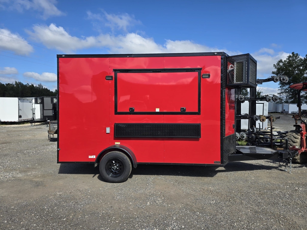 💥 Welcome to Best Trailers & Supply – Your Ultimate Trailer Destination! 💥 📍 Location: Byron, GA 🍑 📞 Call us at 478.654.5350 for Expert Advice and Unbeatable Deals! 🆓 Don’t Miss Out! Get a FREE White Wheel Spare Tire when you Pay Cash at Pick Up! 🆓 Empire Cargo 6×12 Concession Trailer – Size: 6×12 enclosed concession trailer Color: Red with blackout package Interior: White metal walls & ceiling, rubber coin flooring for durability Electrical: 50 AMP electrical package Comfort: Air conditioning installed Kitchen Setup: Sinks in the nose for convenience Tongue: Extended tongue with generator platform Rear Access: Walkthrough door for easy entry/exit Axle: 3,500 lb. leaf spring axle for dependable performance This Empire Cargo concession trailer is designed for fairs, festivals, and food service businesses, giving you a durable and efficient mobile setup with everything you need to get started. 🚚 Delivery Available at $2 per Loaded Mile! 🚚 📞 For any questions, concerns, or info on this trailer, don’t hesitate to call our dedicated sales team at 478.654.5350! 📍 Visit us at Best Trailers & Supply in Byron, GA or call 478.654.5350 for more information! 🌟