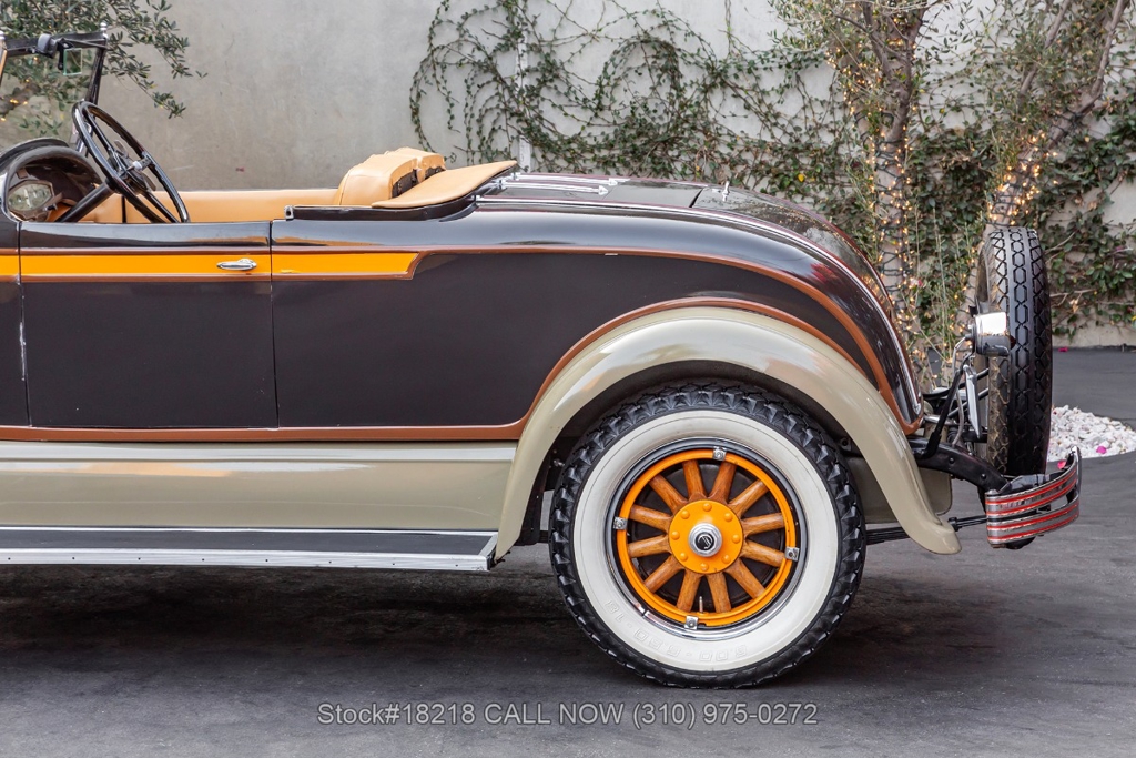 Introducing this inter-war 1928 Chrysler Model 72 Roadster with Rumble Seat that is finished in a brown exterior with olive green fenders complemented by a tan interior. To further enhance the exterior, this Model 72 has a rumble seat that allows an open-air experience for additional passengers.