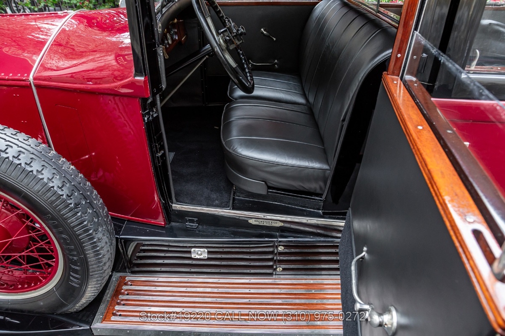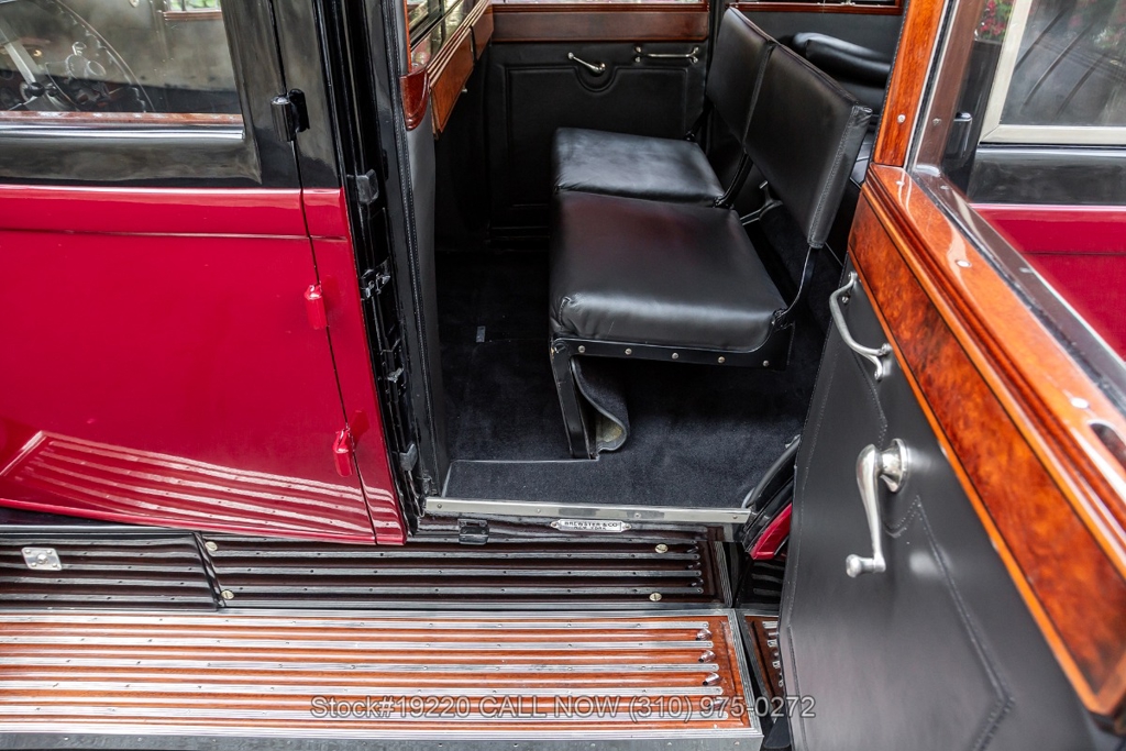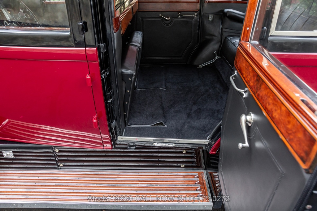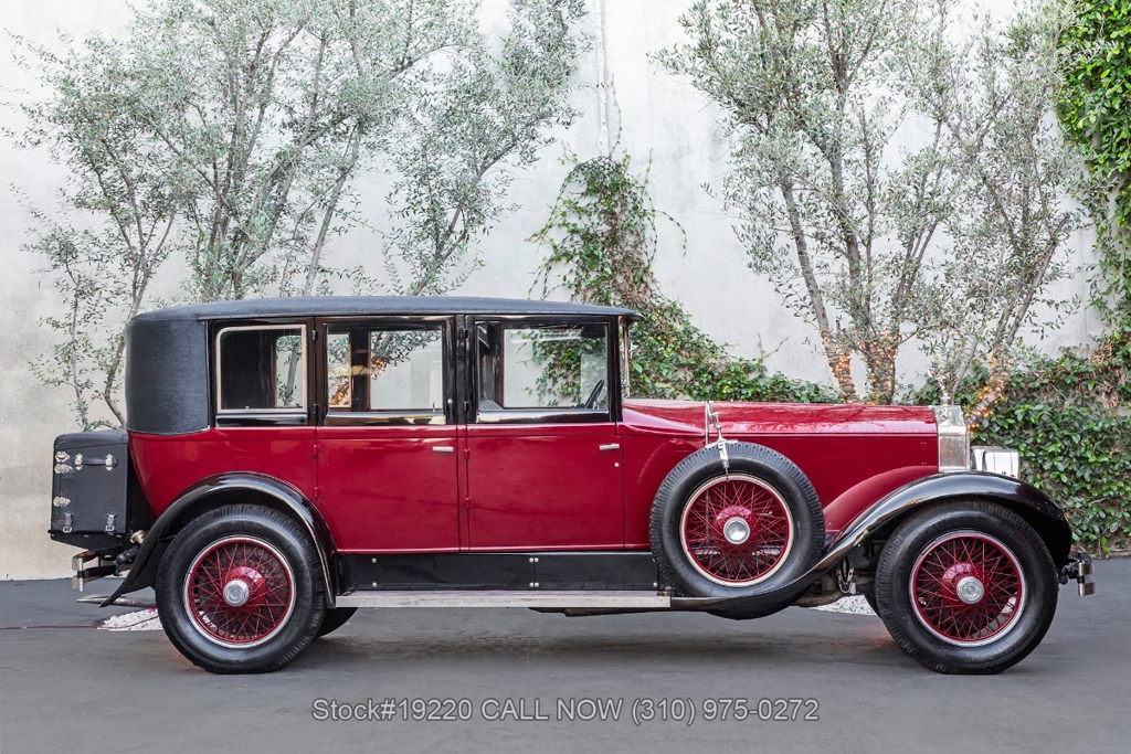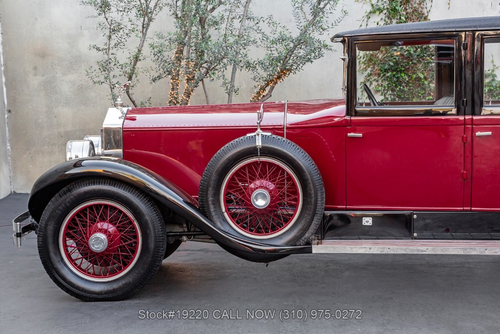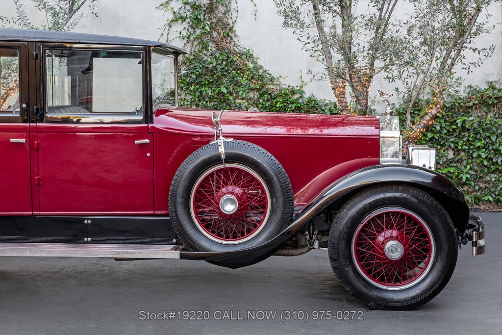 Introducing the 1929 Rolls-Royce Phantom P1 Left-Hand-Drive Limousine, a masterpiece of automotive elegance and a symbol of the opulence of a bygone era. This particular Phantom P1 is finished in a striking two-tone color scheme of burgundy and black, a combination that exudes sophistication and timeless style. The exterior is complemented by color-matched wire wheels, which add a touch of harmony to the vehicle's overall aesthetic. The iconic Rolls-Royce grille, adorned with the Spirit of Ecstasy, graces the front fascia, adding a touch of grandeur and prestige. Chrome bumpers and meticulously crafted details further enhance its regal presence, making it a true standout on the road.