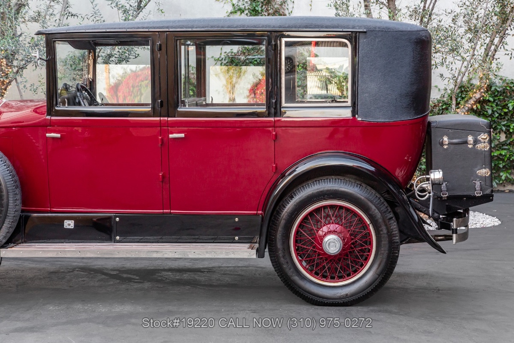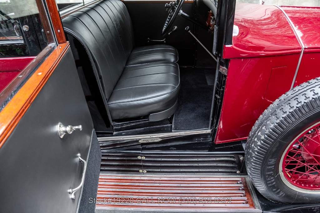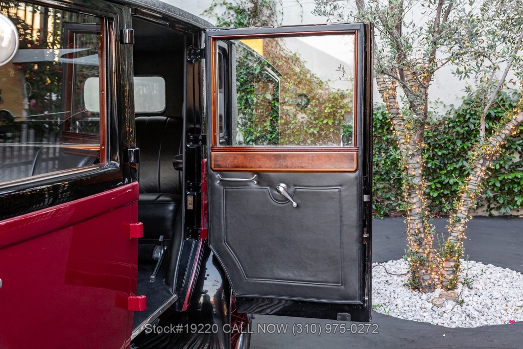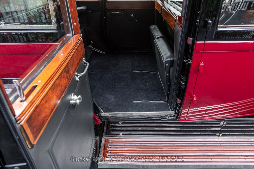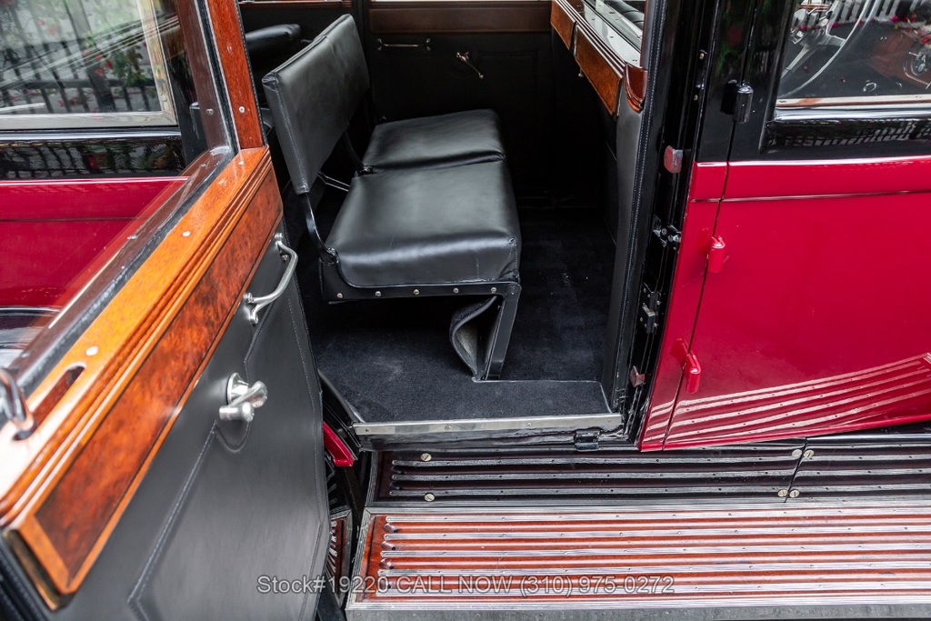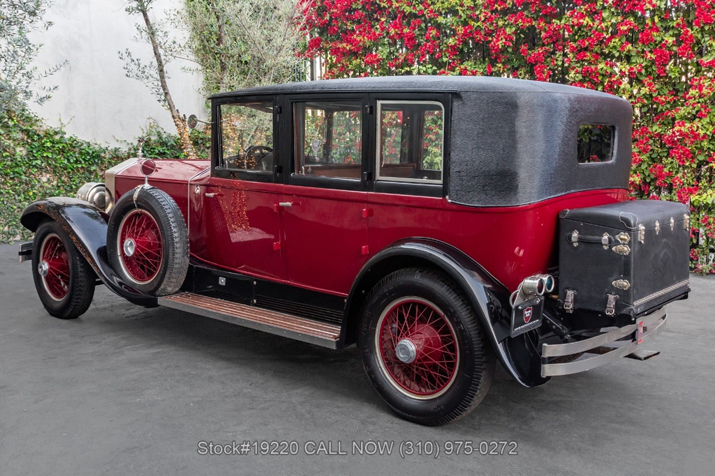 Introducing the 1929 Rolls-Royce Phantom P1 Left-Hand-Drive Limousine, a masterpiece of automotive elegance and a symbol of the opulence of a bygone era. This particular Phantom P1 is finished in a striking two-tone color scheme of burgundy and black, a combination that exudes sophistication and timeless style. The exterior is complemented by color-matched wire wheels, which add a touch of harmony to the vehicle's overall aesthetic. The iconic Rolls-Royce grille, adorned with the Spirit of Ecstasy, graces the front fascia, adding a touch of grandeur and prestige. Chrome bumpers and meticulously crafted details further enhance its regal presence, making it a true standout on the road.