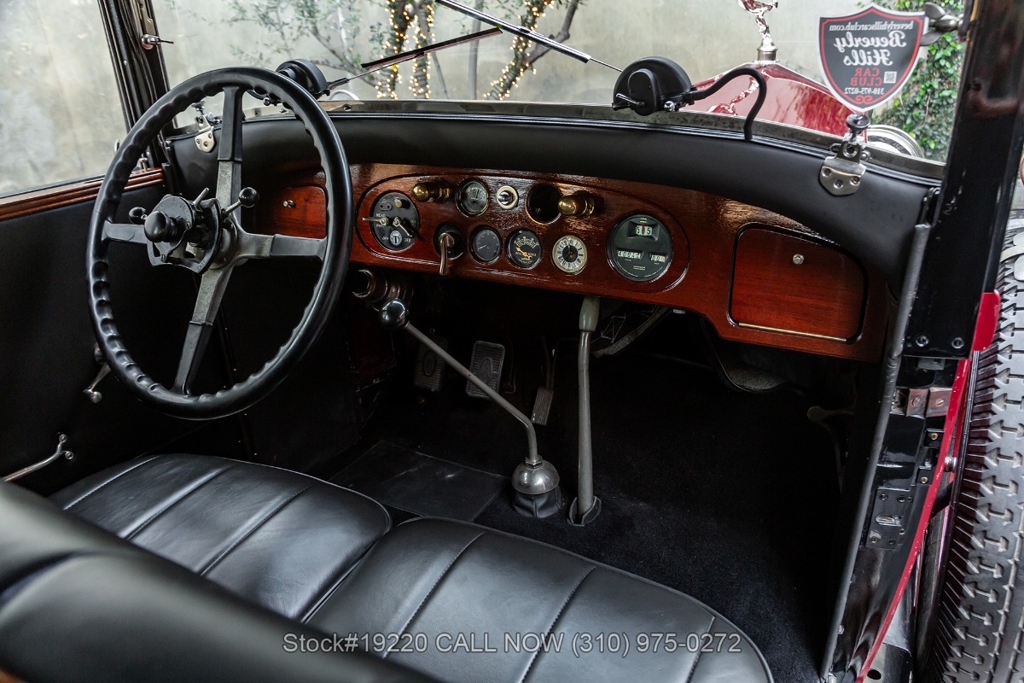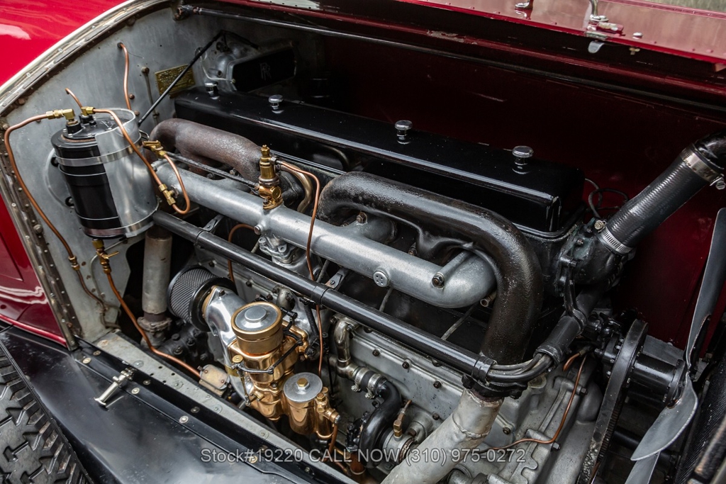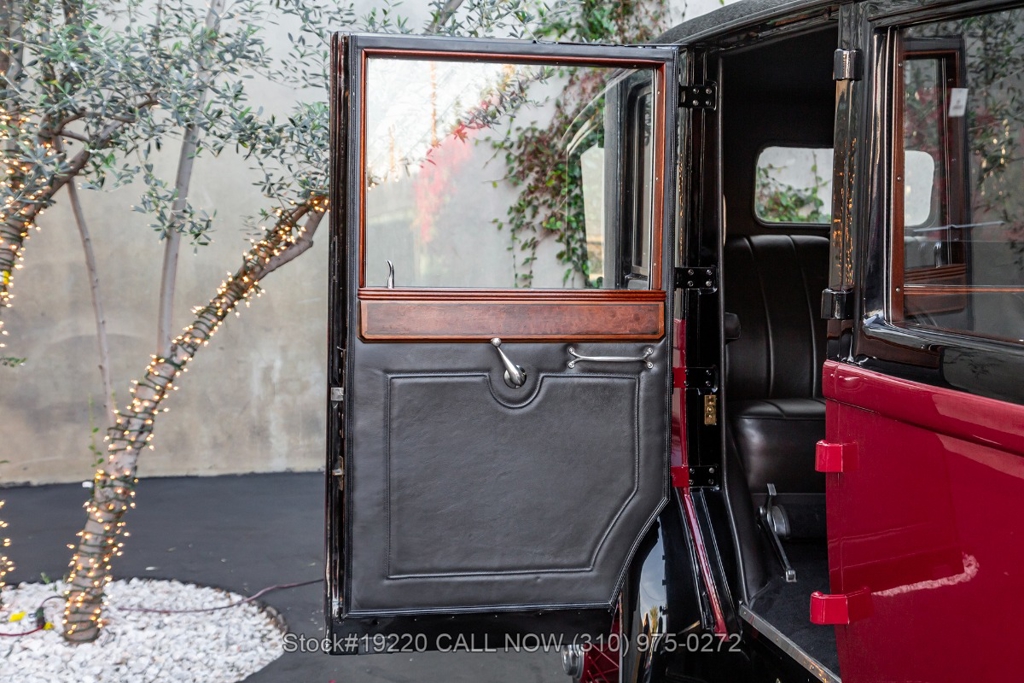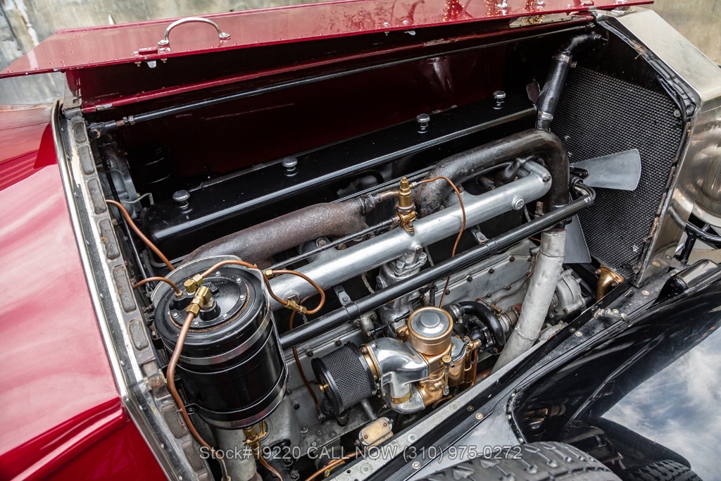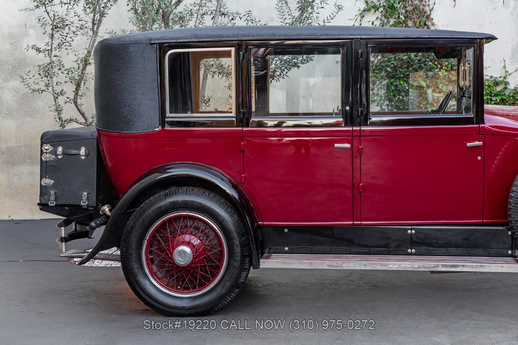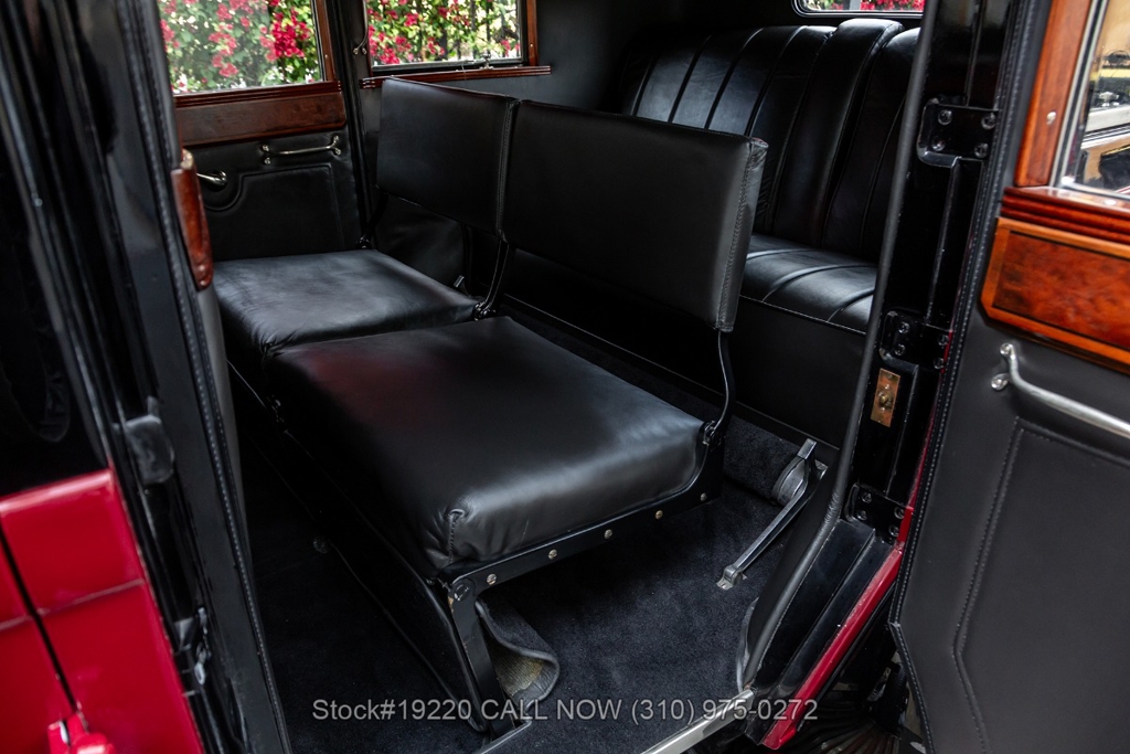 Introducing the 1929 Rolls-Royce Phantom P1 Left-Hand-Drive Limousine, a masterpiece of automotive elegance and a symbol of the opulence of a bygone era. This particular Phantom P1 is finished in a striking two-tone color scheme of burgundy and black, a combination that exudes sophistication and timeless style. The exterior is complemented by color-matched wire wheels, which add a touch of harmony to the vehicle's overall aesthetic. The iconic Rolls-Royce grille, adorned with the Spirit of Ecstasy, graces the front fascia, adding a touch of grandeur and prestige. Chrome bumpers and meticulously crafted details further enhance its regal presence, making it a true standout on the road.