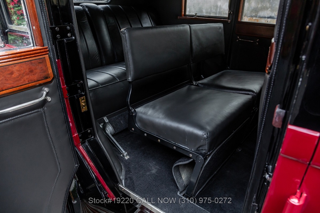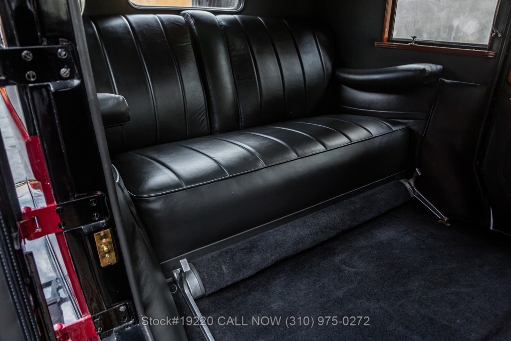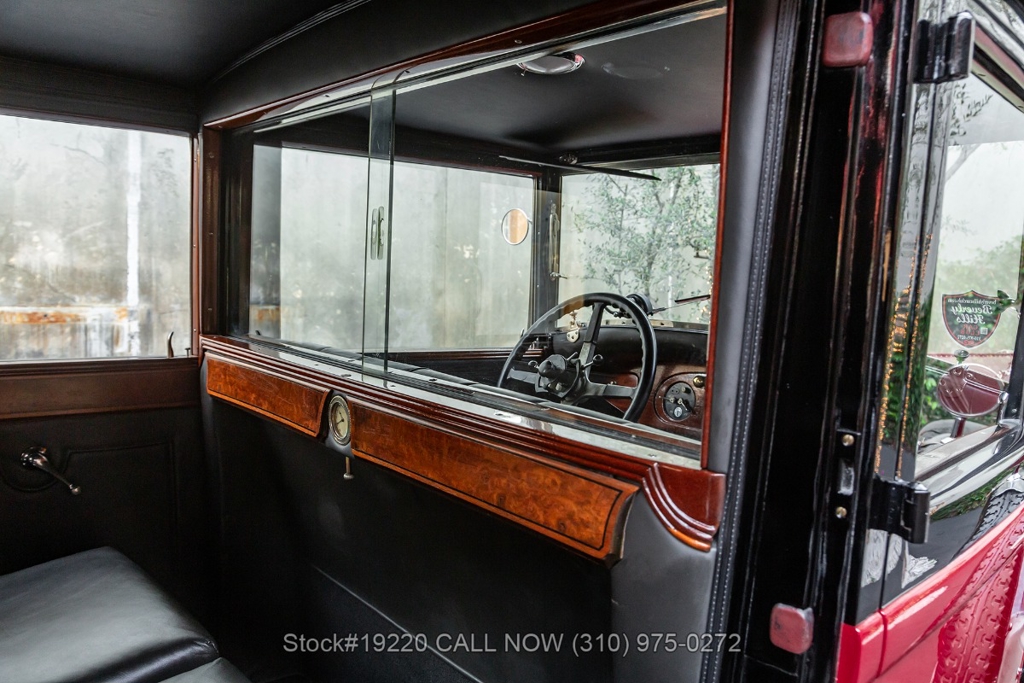 Step inside, and you'll be greeted by a luxurious black interior, adorned with exquisite wood trim that speaks to the vehicle's heritage and attention to detail. The interior features a luxurious glass partition, providing privacy and comfort for rear passengers. Convenience features abound, including bench seating, rear jump seats, a rear dome light, and fender-mounted side mirrors. The 4-spoke steering wheel, analog clock, and glove box add to the vehicle's charm and functionality.