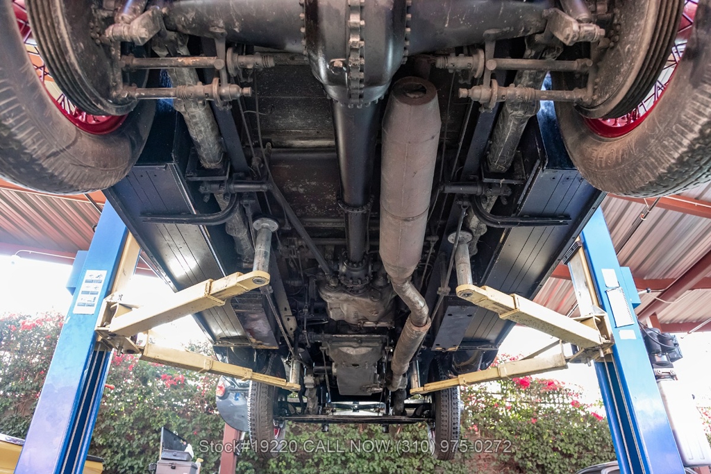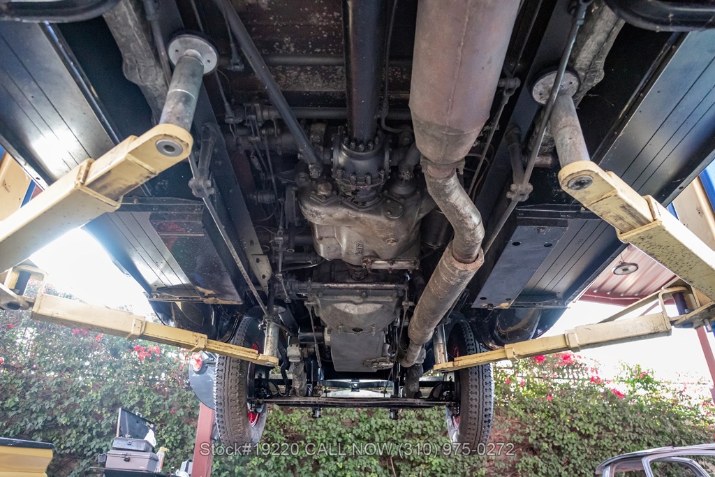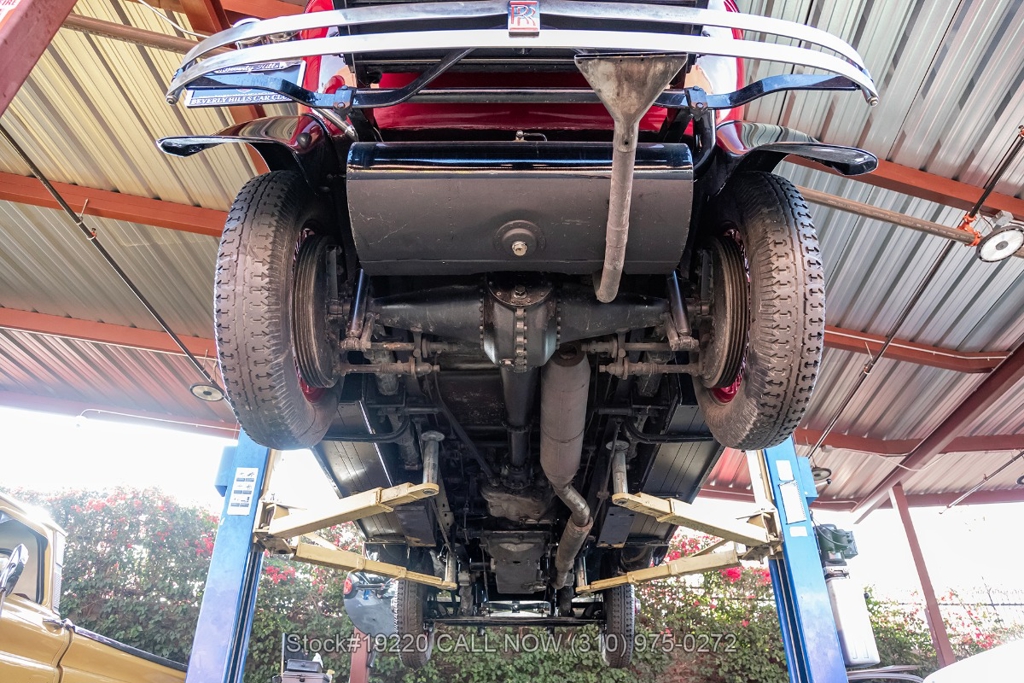 Under the hood lies a robust straight-six engine, paired with a manual transmission, offering a driving experience that is both engaging and smooth. The vehicle is equipped with drum brakes all around, ensuring reliable stopping power, while the single exhaust outlet provides a subtle yet distinctive note. The slanting windshield not only adds to the vehicle's aerodynamic profile but also enhances its classic appeal.