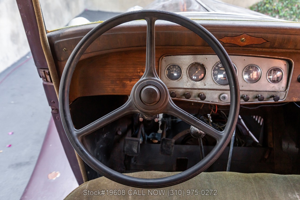 Inside, the instrumentation is straightforward and functional, centered around a large 100-mph speedometer, accompanied by oil pressure and water temperature gauges. The layout offers a clear view of how luxury automobiles were engineered at the time, with simplicity and durability in mind.