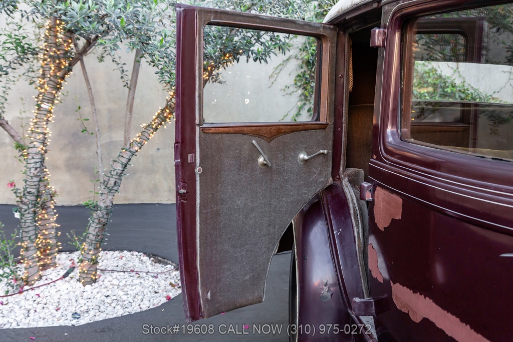 Introducing this 1931 Auburn 8-98 A Sedan 3-Speed, finished in a deep maroon that suits its pre-war character. The design reflects the era's focus on craftsmanship, with upright proportions, rear-hinged doors, and a long hood accented by multiple louvers that hint at the engineering beneath.