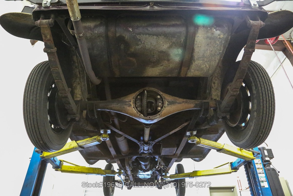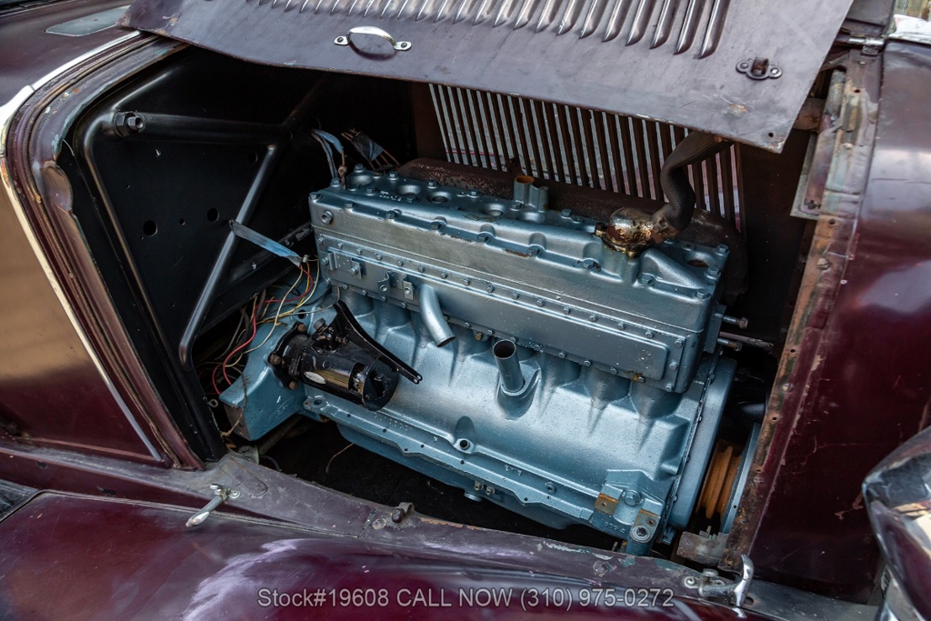 This Auburn is equipped with an inline eight-cylinder engine paired to a 3-speed manual gearbox, along with period-correct features such as chrome-plated headlamps, cowl lamps, a single exhaust outlet, and a three-spoke steering wheel. The exterior details, chrome trim, bumpers, rear-hinged "suicide" rear doors, and solar-style chrome headlights complement the car's formal presence, while it rides on 17-inch artillery-style wood-spoke wheels fitted with Lester tires.