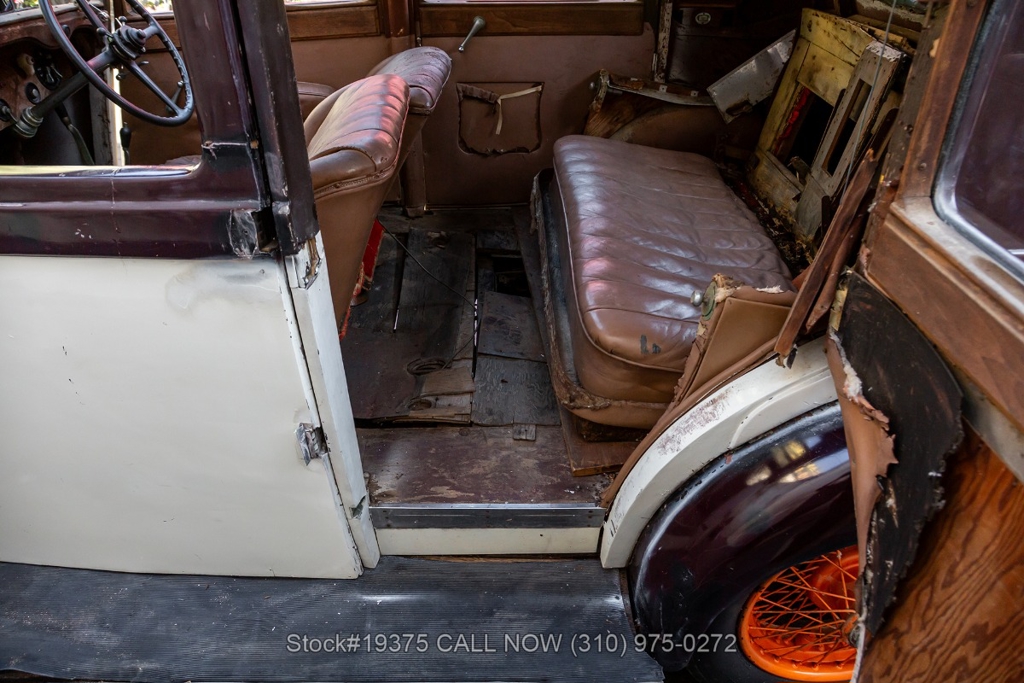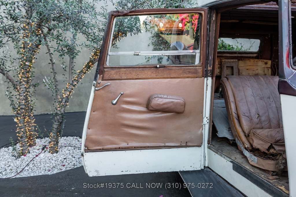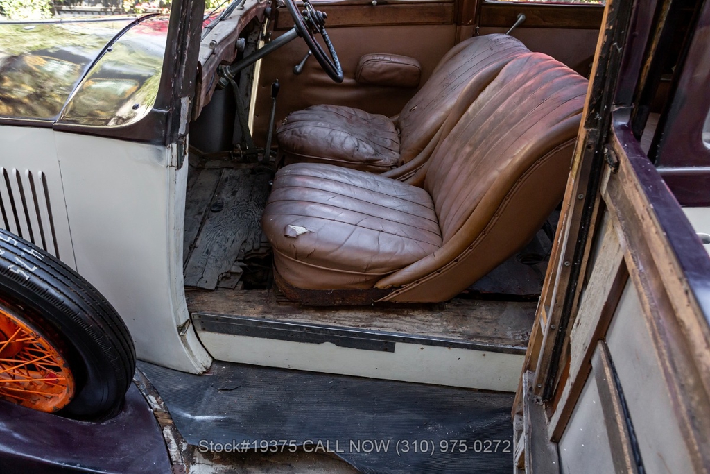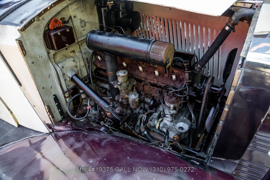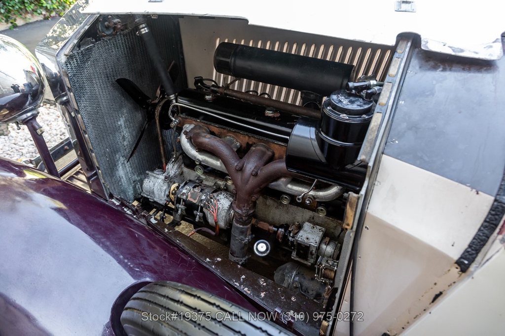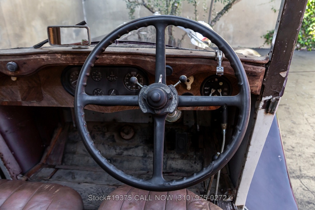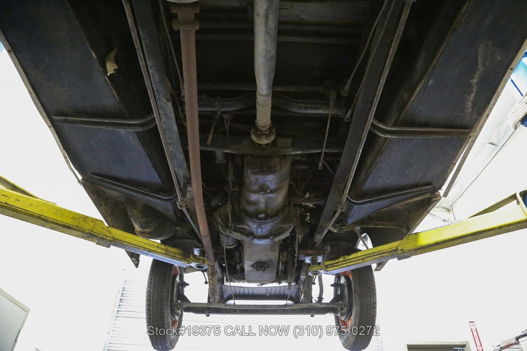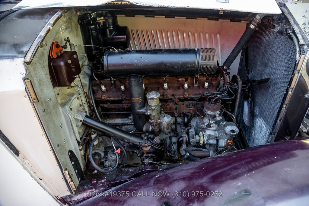Equipped with a 4-speed manual transmission, straight-six engine, single-barrel carburetor, drum brakes, rear hinged doors, Lucas-branded headlights, interior wood trim, Exelsior Racing tires, 19-inch wire wheels, and a side-mounted spare tire. Featured amenities include adjustable separate seats, dash-mounted rearview mirror, and a 4-spoke steering wheel.