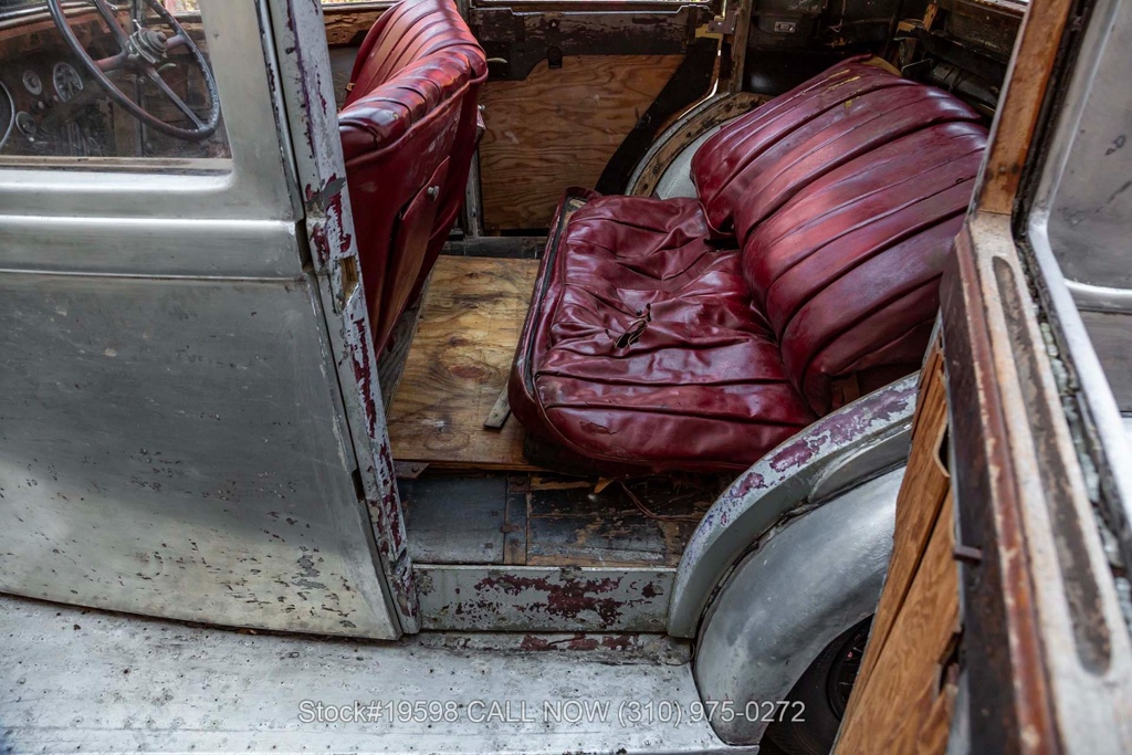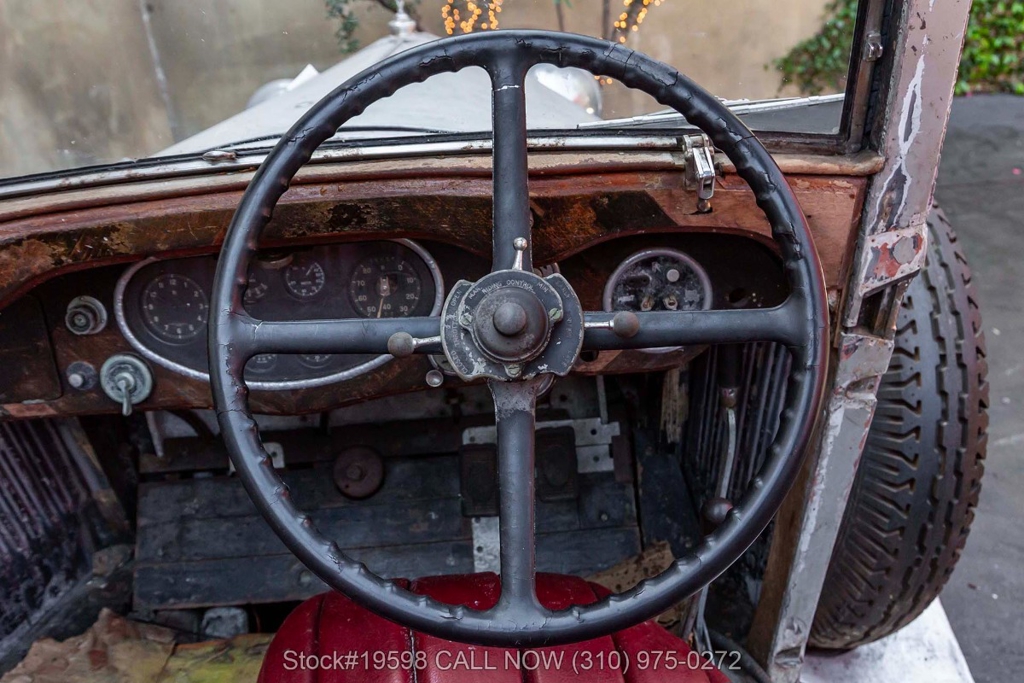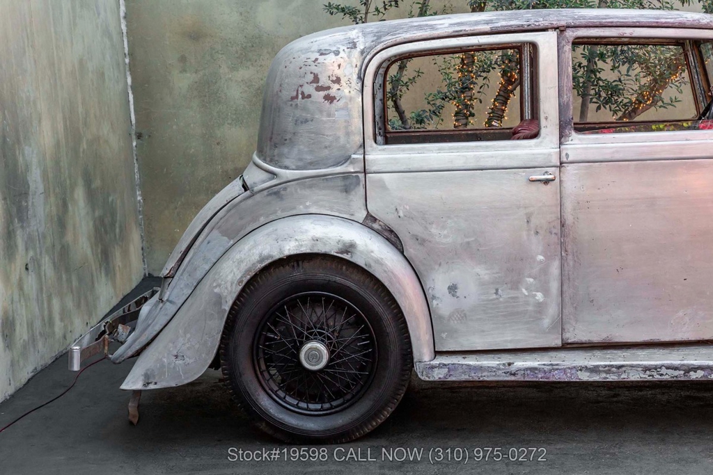 Equipped with a 4-speed manual transmission, straight-six engine, single-barrel carburetor, drum brakes, rear-hinged doors, Spirit of Ecstasy hood ornament, 19-inch wire wheels, and a side-mounted spare tire. Featured amenities include a 4-spoke steering wheel, interior wood trim, Lucas headlights, and classic Smiths instrumentation.