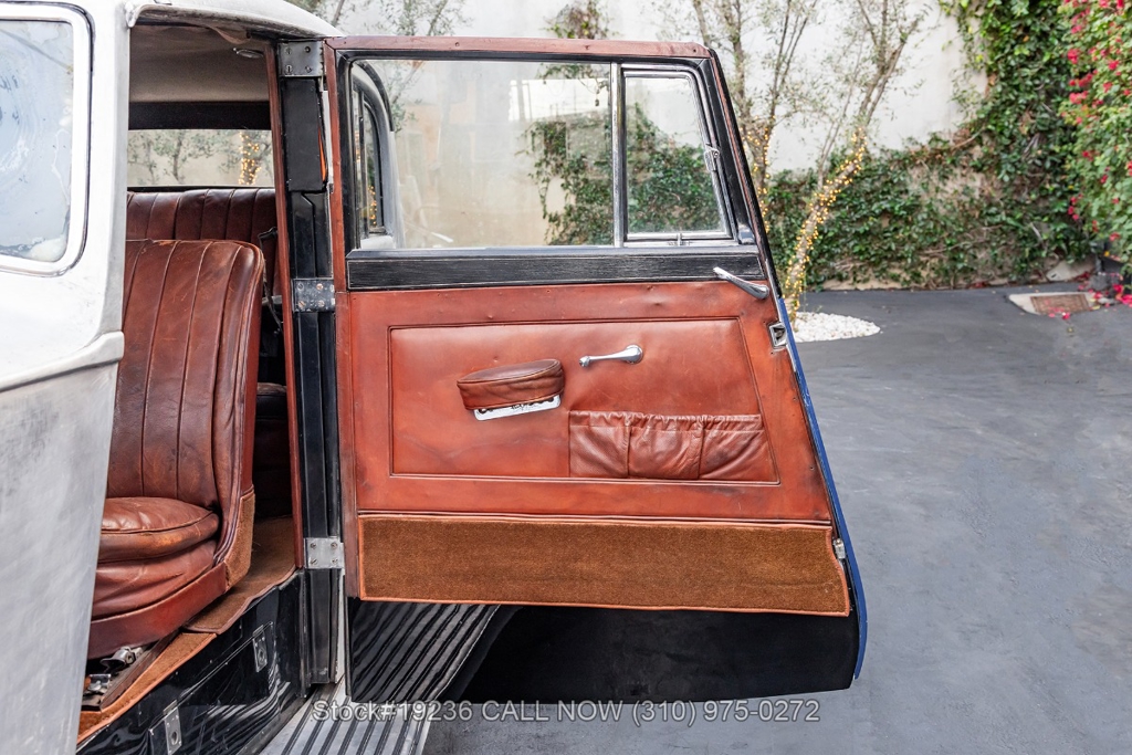 Equipped with a manual transmission, inline 6-cylinder engine, single-barrel carburetor, drum brakes, single exhaust outlet, Lucas headlamps, Smiths instrumentation, trafficators, chrome bumpers, interior wood trim, 19-inch steel wheels with Dunlop tires, Rolls-Royce branded wheel center caps, and a full-size spare tire mounted on the fender. Amenities include a tilt-out front windshield, map pockets, a 3-spoke steering wheel, and front bucket seats.