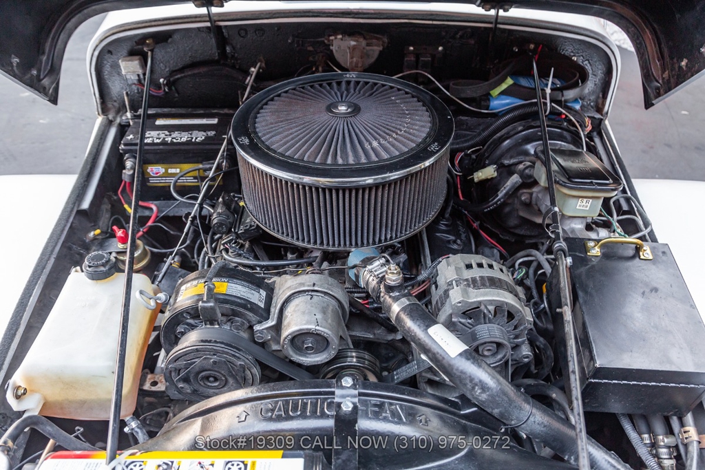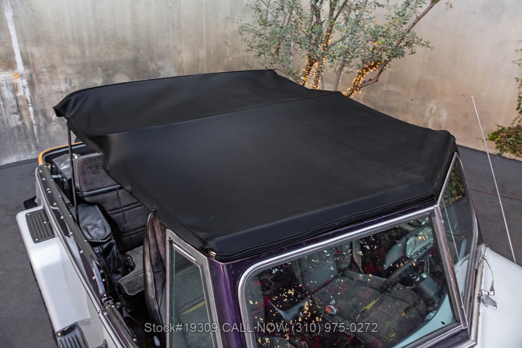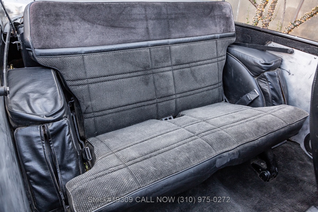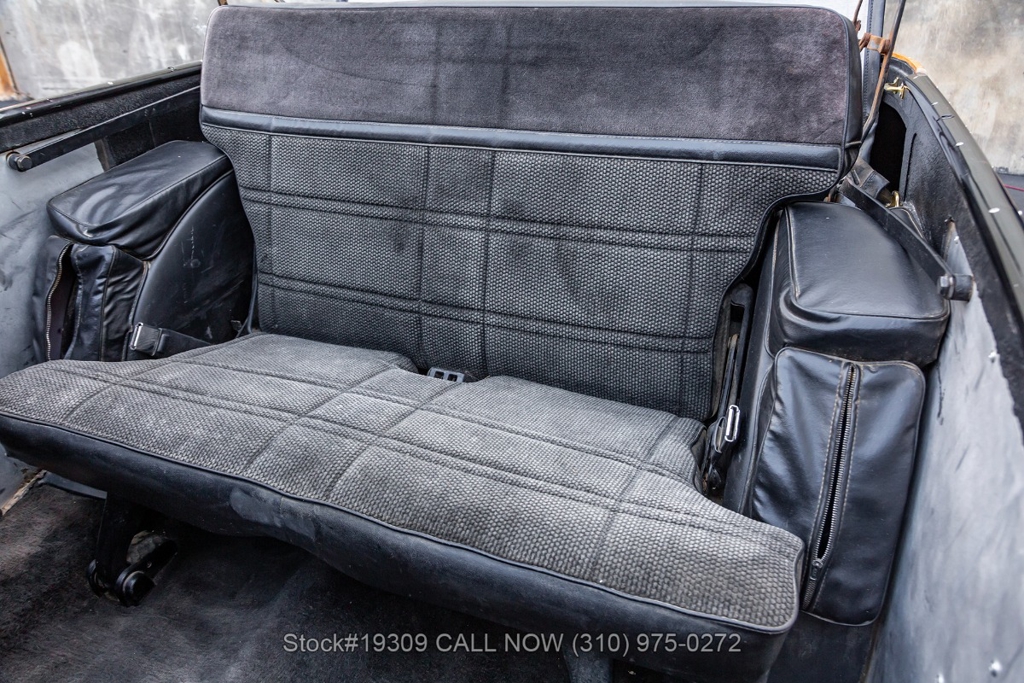 Additional exterior touches include a black soft convertible top, side steps, mud flaps, and a trunk-mounted full-size spare tire, all contributing to both function and style. Inside, the cabin features front bucket seats, a rear bench seat, and a Delco radio, center console, maintaining a simple and period-correct interior feel.