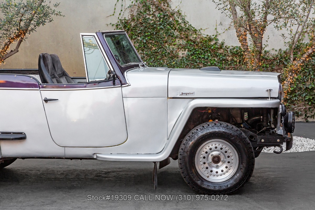 Introducing this 1948 Willys-Overland Jeepster 4x4, retrofitted with a V6 Vortec engine and an S10-based drivetrain. The vehicle is finished in silver, paired with a grey interior and a black convertible soft top, giving it a timeless and classic appearance.