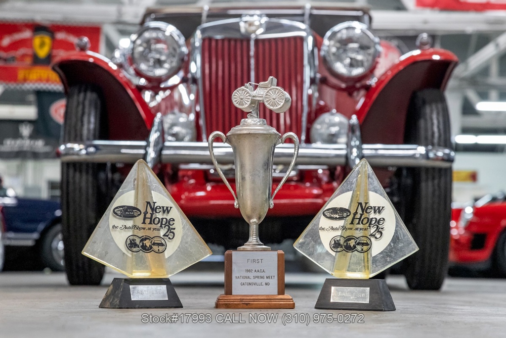 Introducing this 1949 MG TC Right-Hand-Drive featured with matching numbers. Finished in red exterior color gracefully complemented with a beige interior. This iconic vintage vehicle exudes elegance and charm, capturing the essence of a bygone era with its sleek lines and distinctive design.