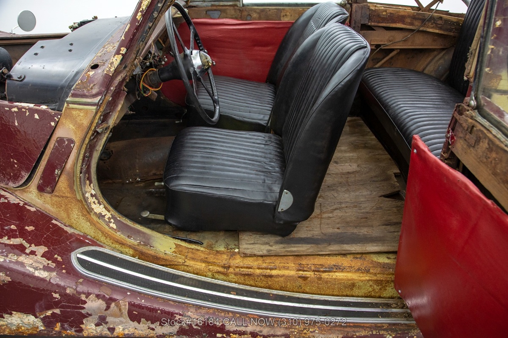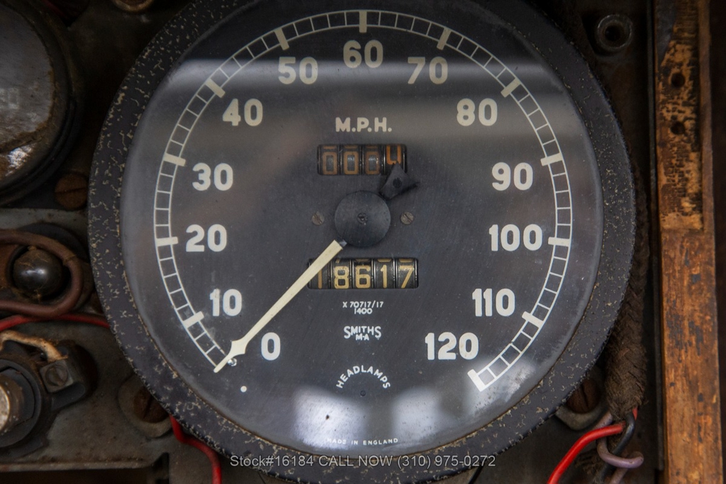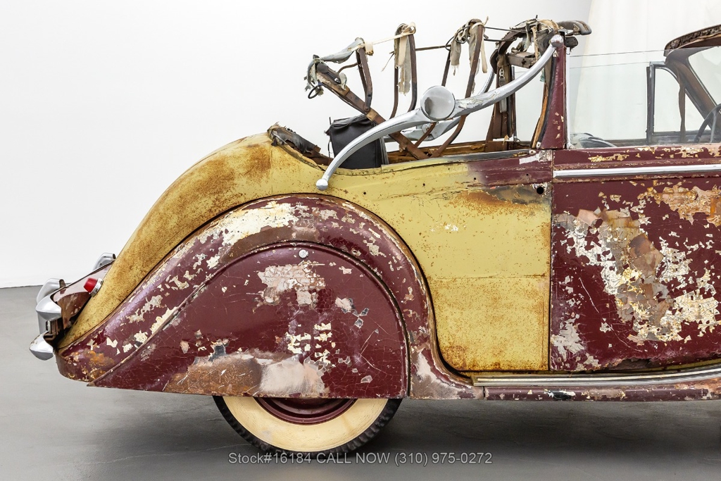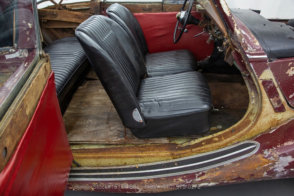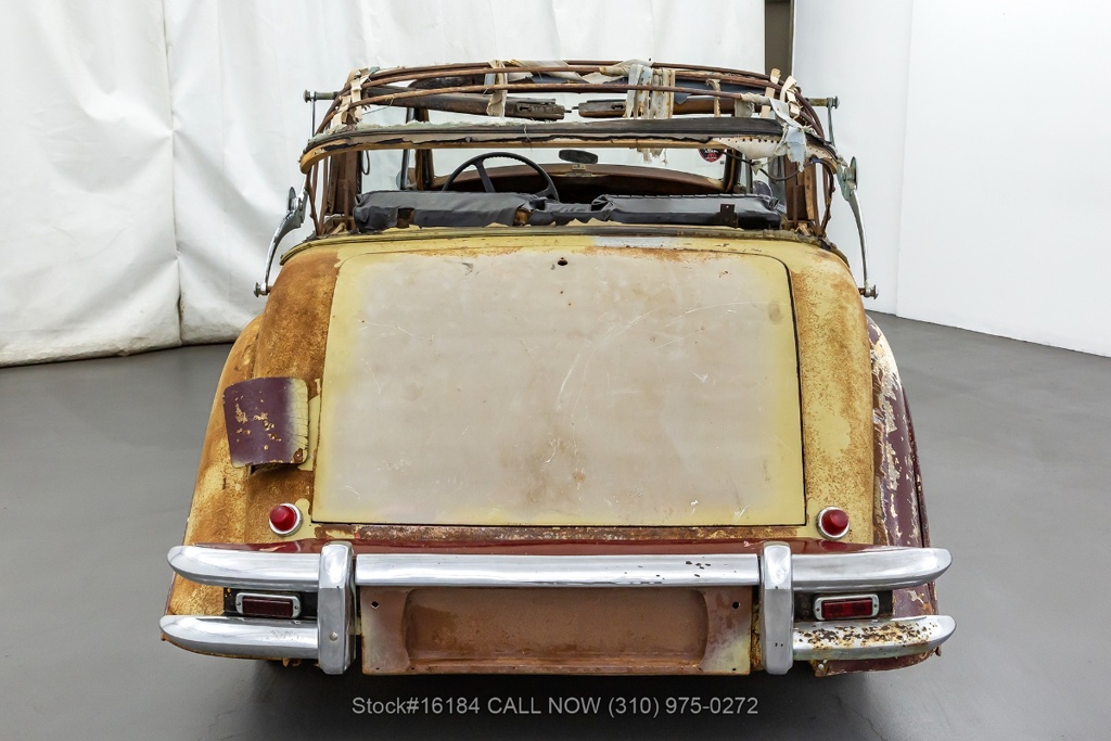 This rare 1950 Jaguar Mark V Drophead Coupe is a left hand drive example that is offered with a black interior. Equipped with a 3 1/2-liter straight-six engine, chrome radiator grille, Smiths instruments, chrome bumpers, fender-mounted side mirrors, four-spoke steering wheel, forward-folding seats, rear bench seat, interior wood trim, rear fender skirts, a jack, whitewall tires, and extra parts on the side. A great opportunity to be a part of a select few to acquire a post-war Jaguar Mark V Drophead that will make an exciting restoration project for any classic car enthusiast. For $16,750