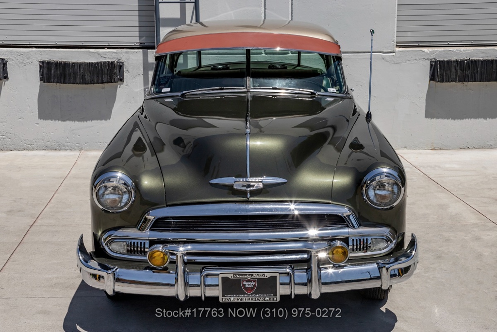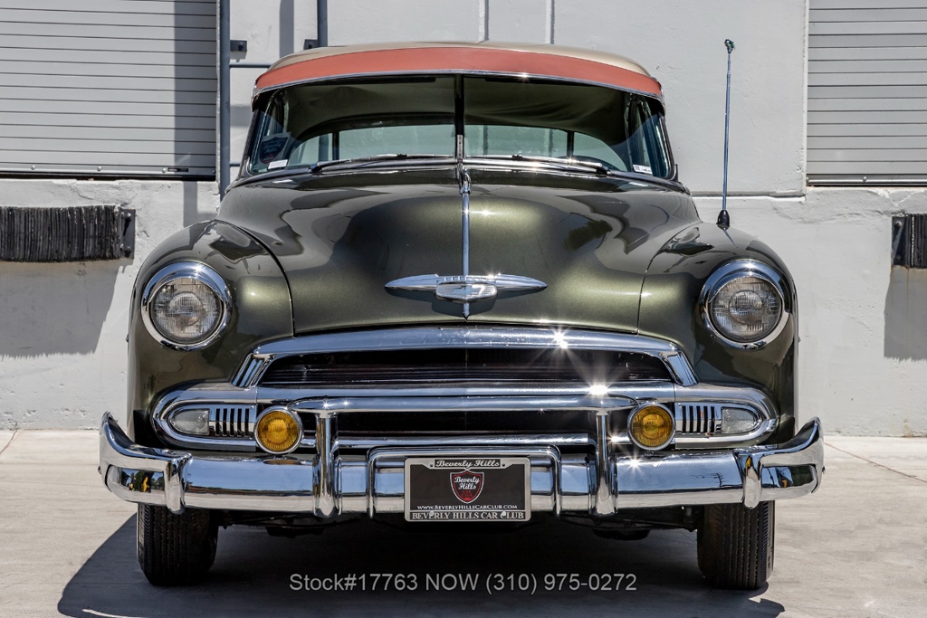 Introducing this first-generation 1951 Chevrolet Bel Air 2 Door Coupe that is finished in green complemented with a green and gray interior. Featuring a sleek and elegant body by Fisher that showcases the meticulous attention to detail that went into its creation. With its distinctive chrome accents and iconic dual headlights, this classic car exudes a sense of nostalgia and sophistication that is unmatched.