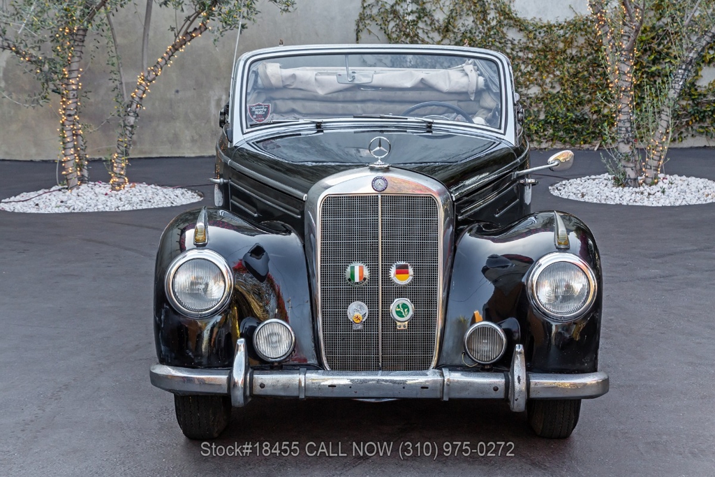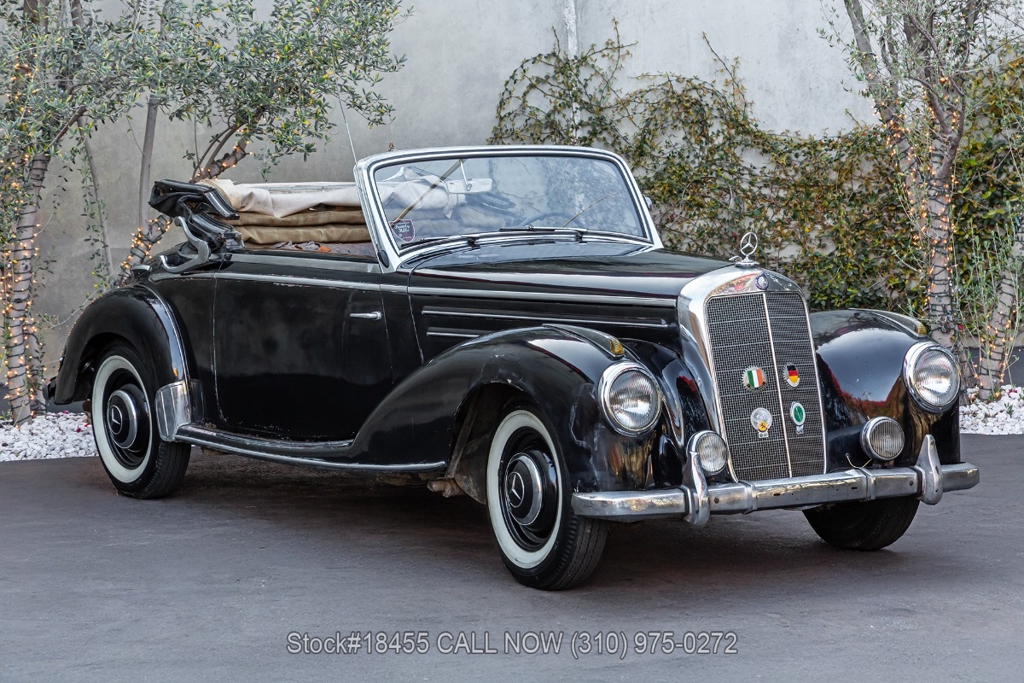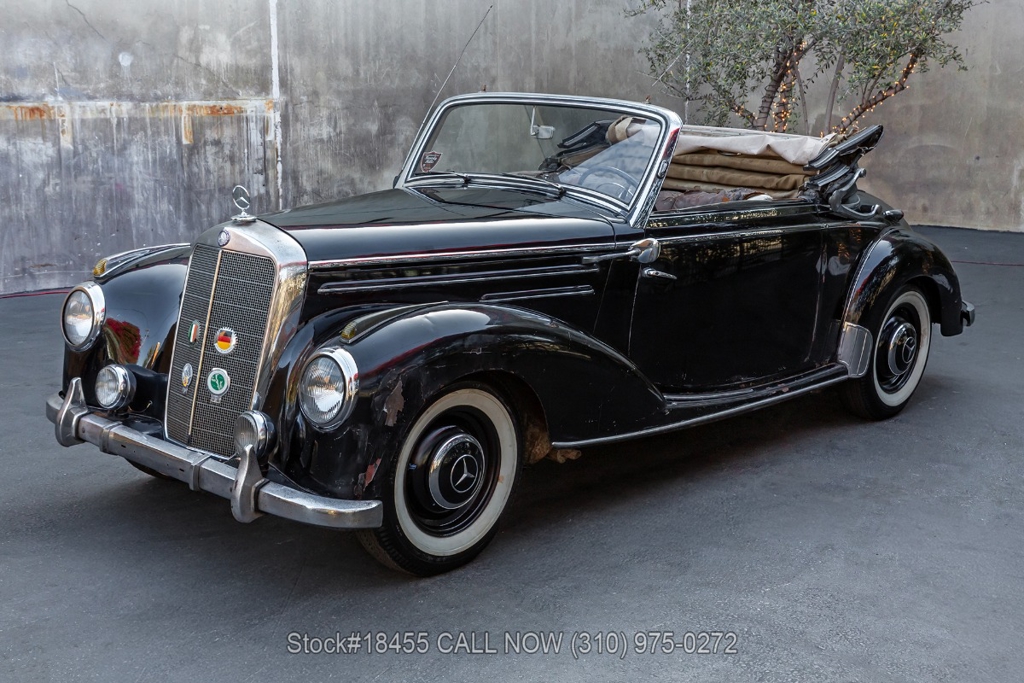 Introducing this 1952 Mercedes-Benz 220 Cabriolet A that is finished in a Black exterior color gracefully complemented by a tan interior with a wood trim. To further enhance the exterior, equipped with a black convertible soft-top. This particular example has a rich history, having been cherished by the same family since 1976. Residing in sunny California, the long-term ownership by a single family adds a layer of provenance and authenticity, making it a truly special find.