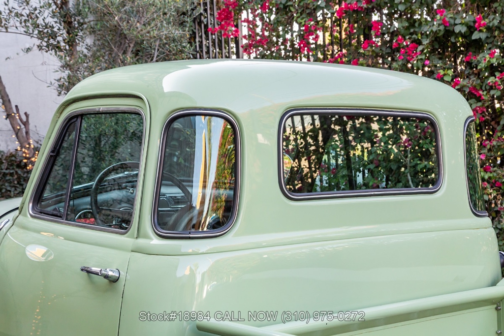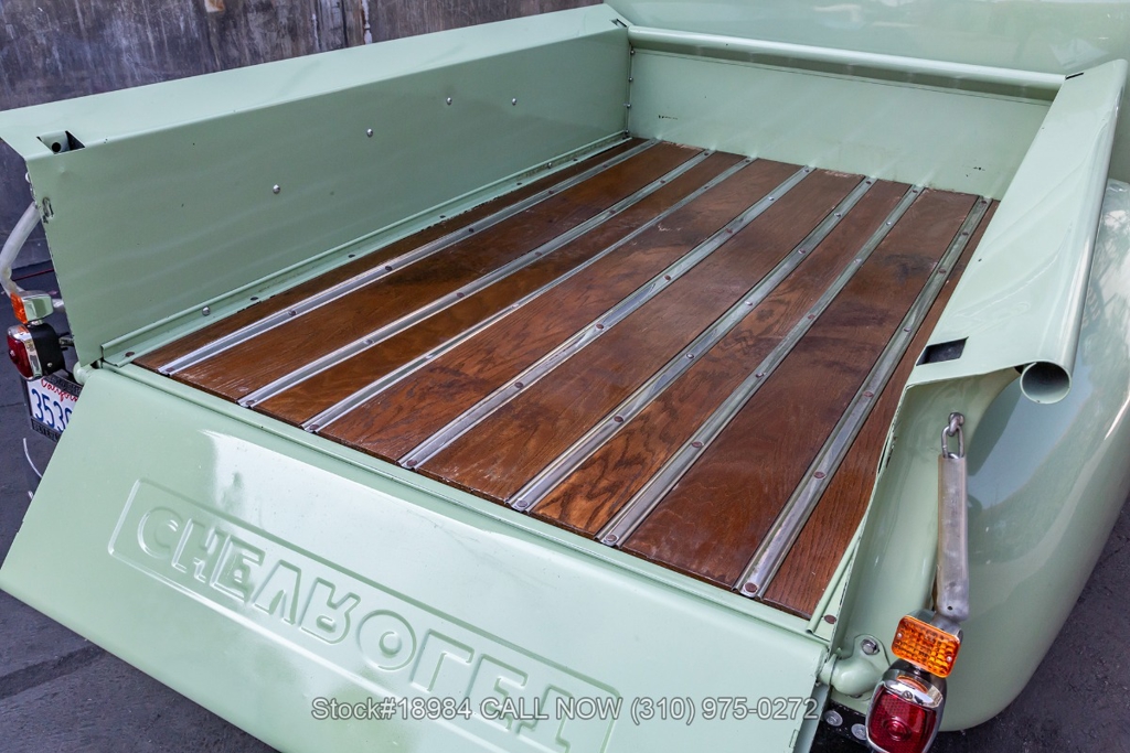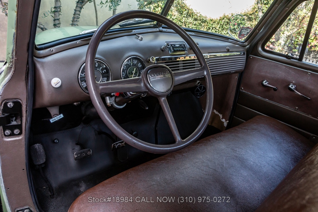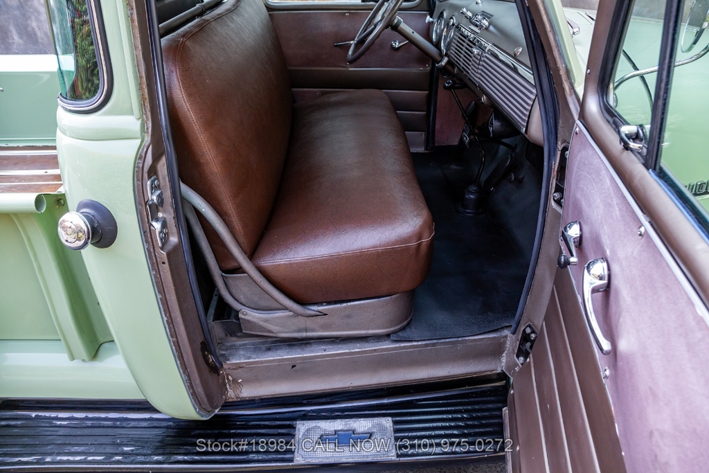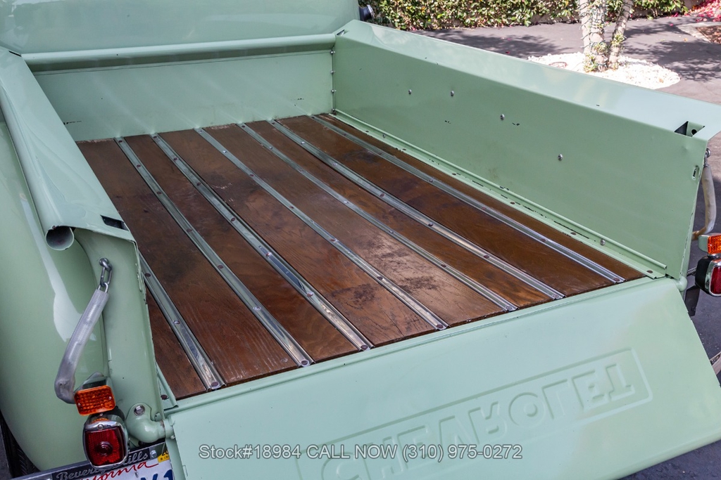 Powered by an inline-six engine, single-barrel carburetor, four-wheel drum brakes, and an engaging 4-speed floor-shift manual transmission. Additional equipment includes a single exhaust outlet, 3-spoke steering wheel, chrome bumpers, slated grill, steel wheels with white-wall tires, and Chevrolet-branded chrome hub caps. Step inside the cabin, and you'll find comfortable bench seating, perfect for long drives or cruising around town. Featured amenities included body side-steps, curved rear quarter windows, two-piece windshield, dual-side rearview mirrors, and a retro-style radio.