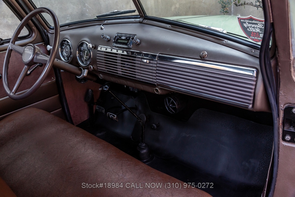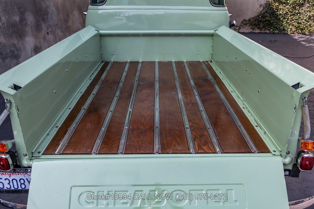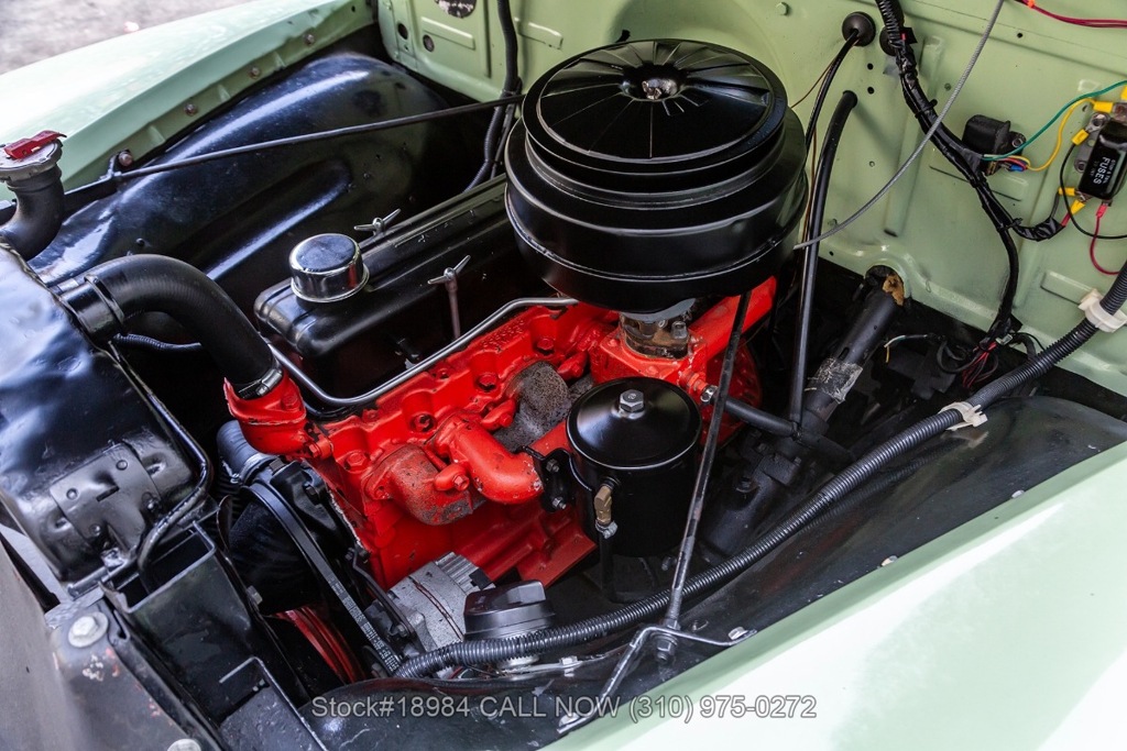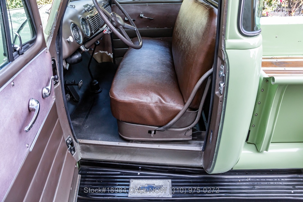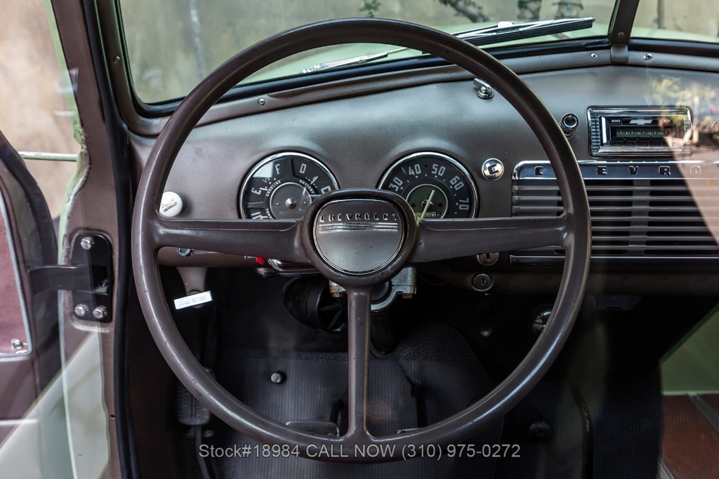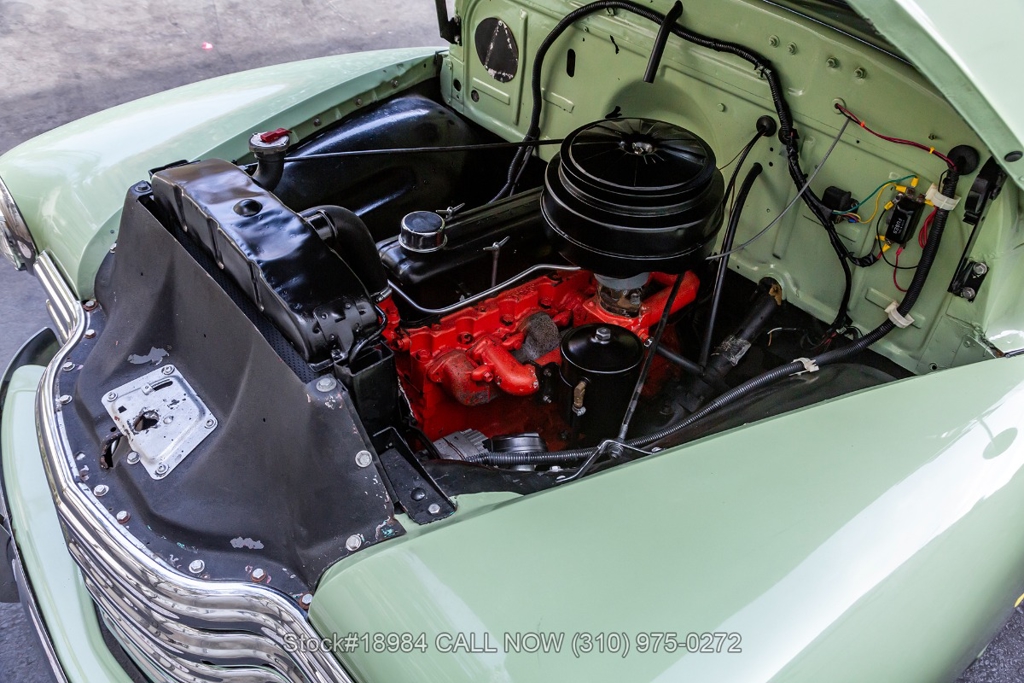 Powered by an inline-six engine, single-barrel carburetor, four-wheel drum brakes, and an engaging 4-speed floor-shift manual transmission. Additional equipment includes a single exhaust outlet, 3-spoke steering wheel, chrome bumpers, slated grill, steel wheels with white-wall tires, and Chevrolet-branded chrome hub caps. Step inside the cabin, and you'll find comfortable bench seating, perfect for long drives or cruising around town. Featured amenities included body side-steps, curved rear quarter windows, two-piece windshield, dual-side rearview mirrors, and a retro-style radio.