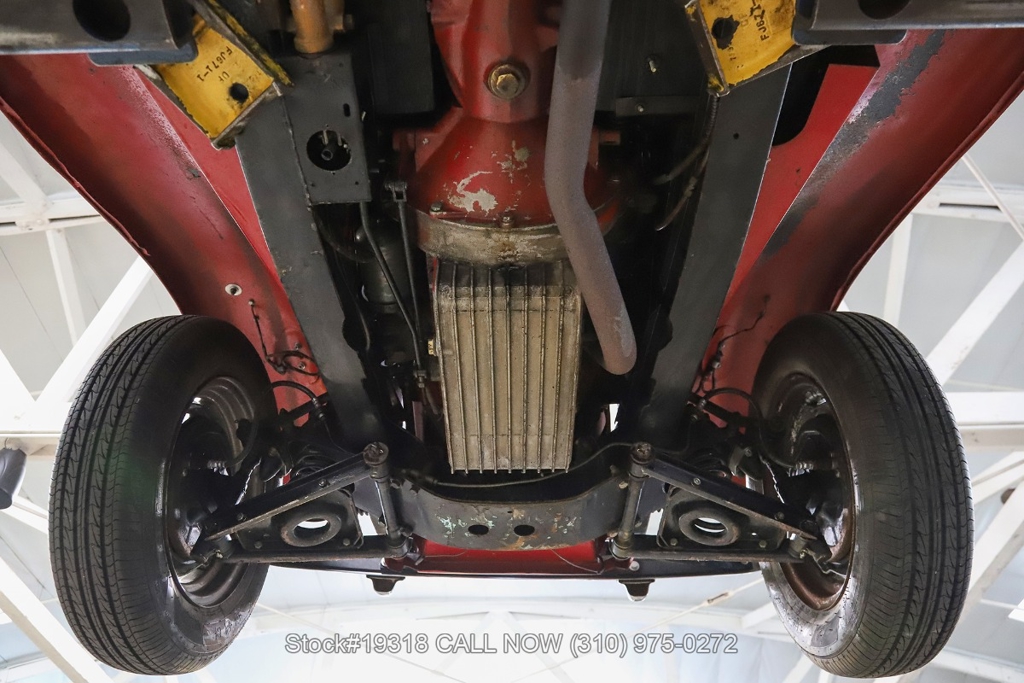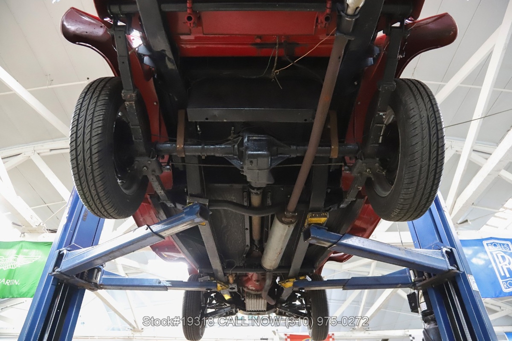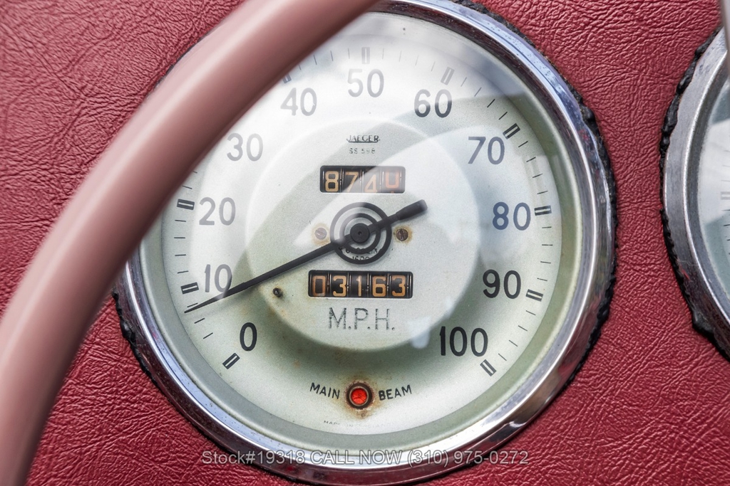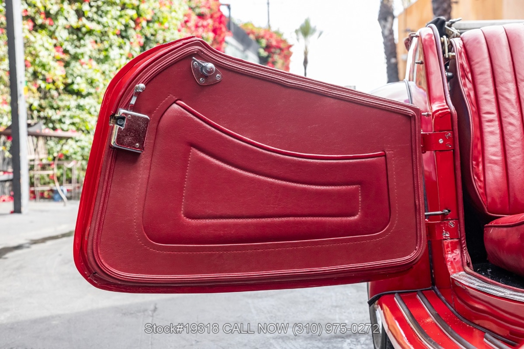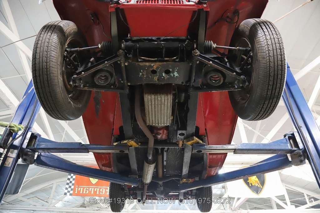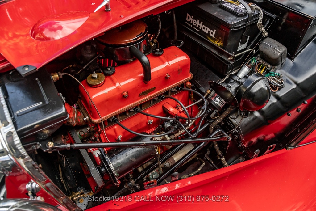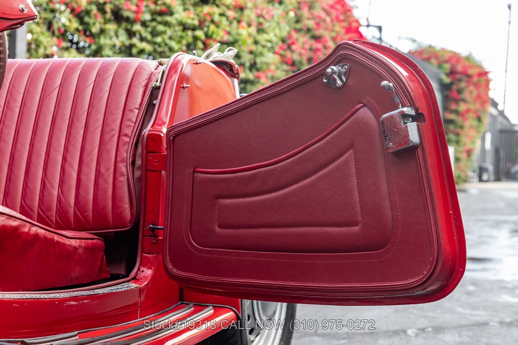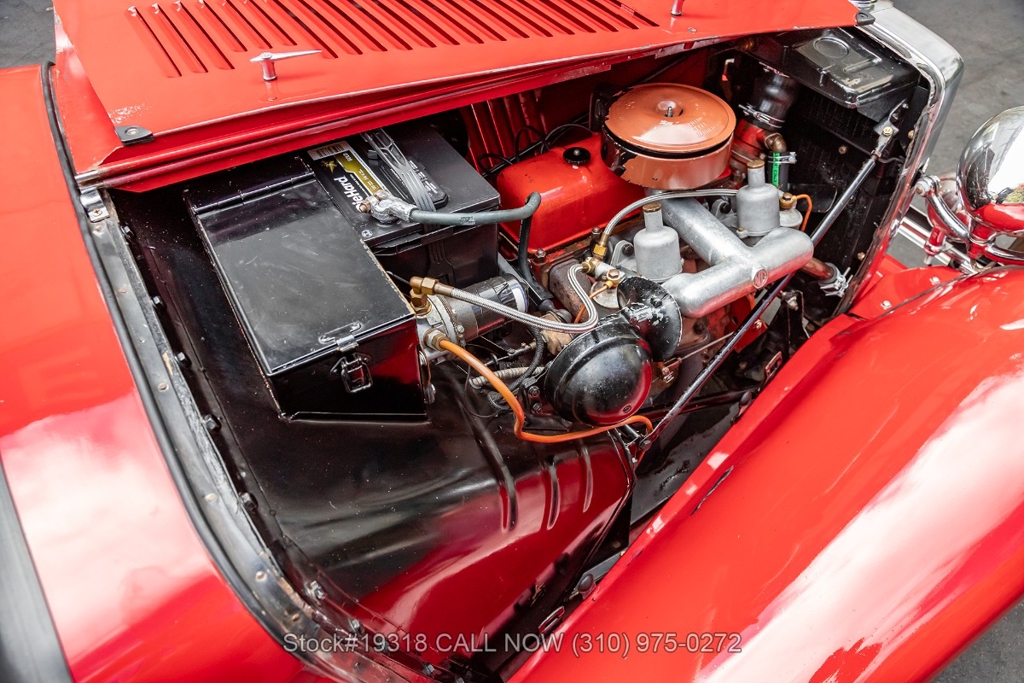 Powered by an inline-four engine paired with a 4-speed manual transmission, this MG TD features SU dual carburetors, drum brakes all the way around, Jaeger/Lucas instrumentation, a white convertible soft top, side curtains, chrome accents, bonnet louvers, a 3-spoke steering wheel, and 15-inch steel wheels with MG-branded hubcaps. A full-size spare tire is neatly mounted at the rear.