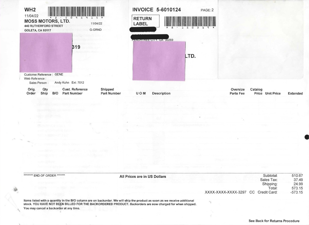 Once full payment is received, the Seller will provide clear title, Bill of Sale and additional Department of Motor Vehicle forms to you for signature. The forms must be completed before the Automobile is shipped or made available to you.