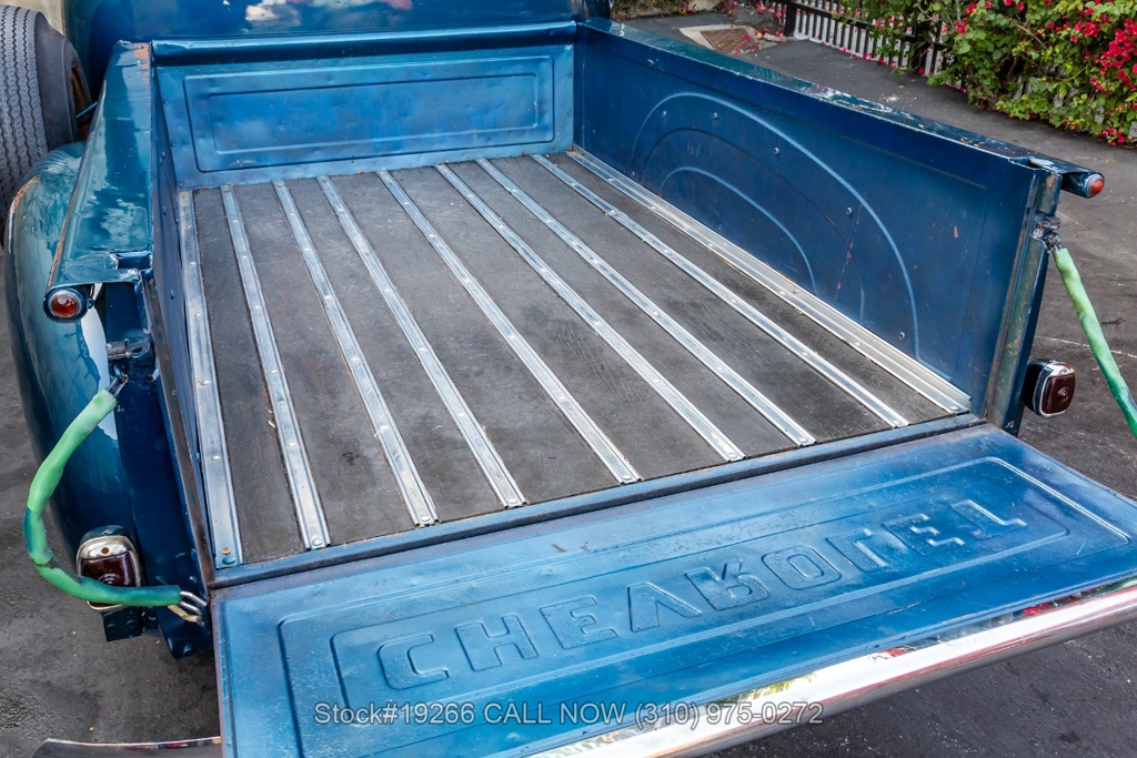 Powered by an inline-six engine, single-barrel carburetor, four-wheel drum brakes, and an automatic transmission. Additional equipment include dual exhaust outlet, 3-spoke steering wheel, chrome bumpers, 16-inch steel wheels with period-correct wide whitewall tires, and Chevrolet-branded chrome hubcaps. Step inside the cabin, and you'll find comfortable bench seating, perfect for long drives or cruising around town. Featured amenities included body side steps, a driver-side rearview mirror, manual-crank windows, vent windows, and a Sunpro instrumentation.