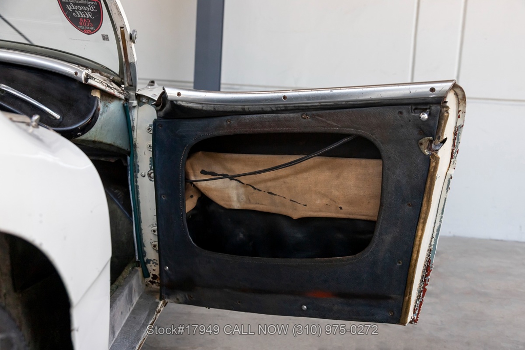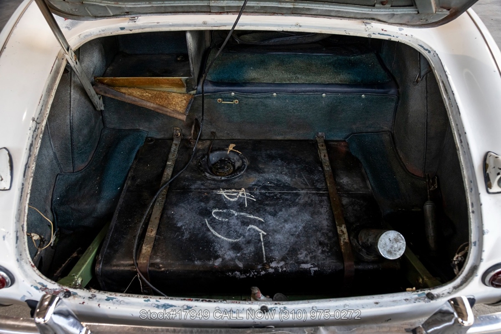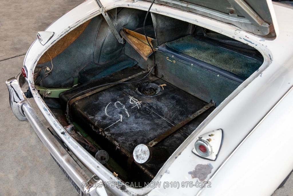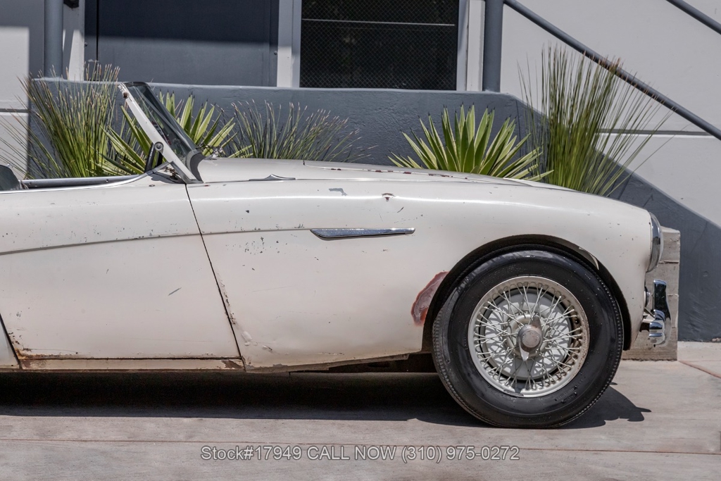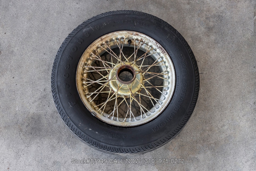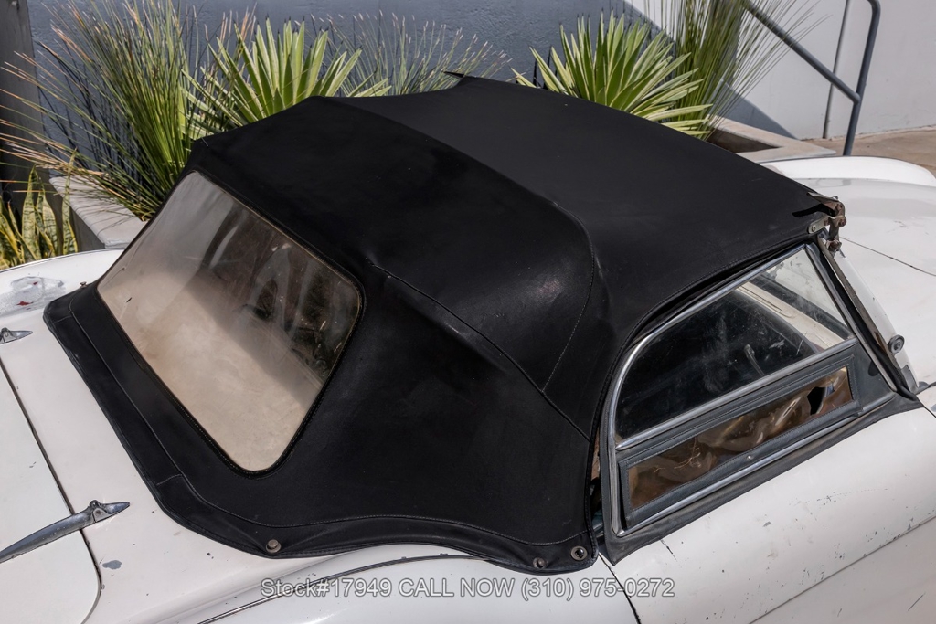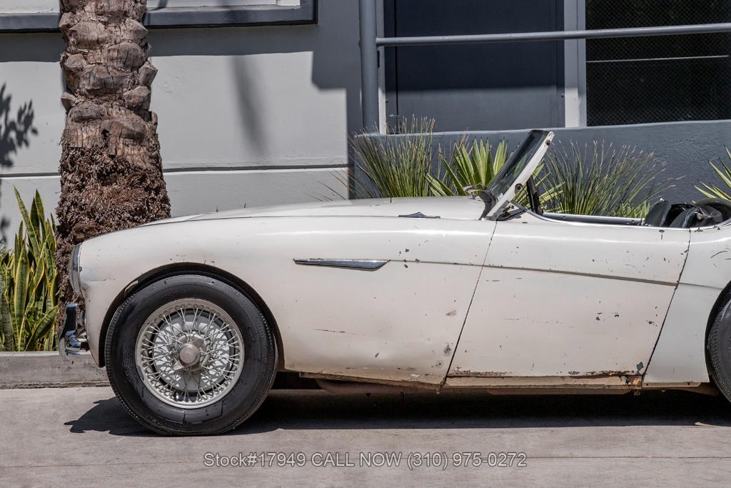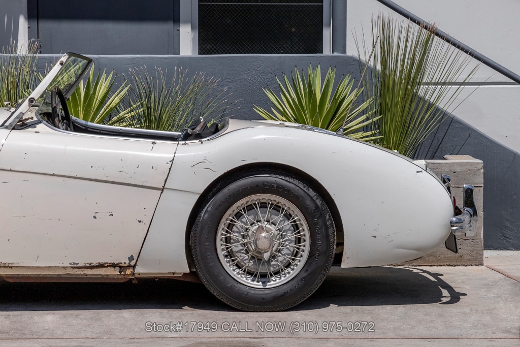 Under the bonnet, this Austin-Healey is powered by a inline-four engine, SU dual carburetors, and a 4-speed manual transmission. Additional equipment includes floor-mounted shifter, single exhaust outlet, Smiths instrumentation, convertible soft top, side curtains, chrome trim, Firestone tires, and 15-inch wire wheels with knock-off spinners. Convenience features include dash- mounted rearview mirror, side pockets, buckets seats, jack, and a spare tire.