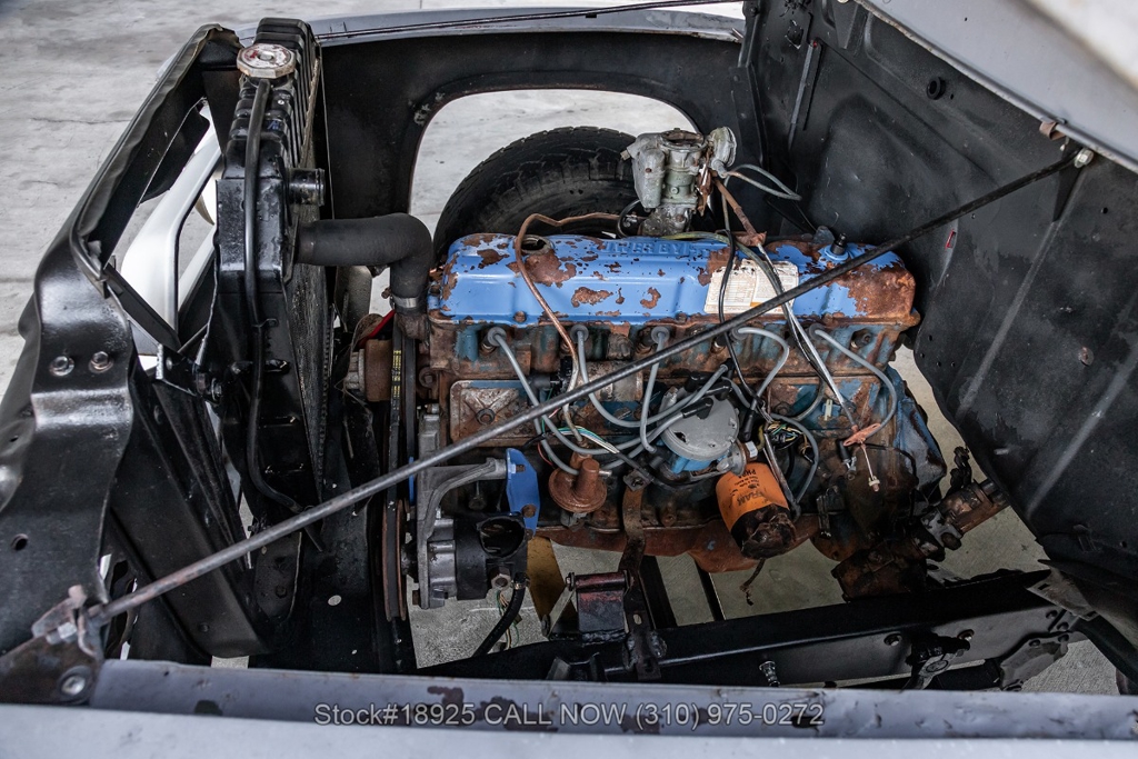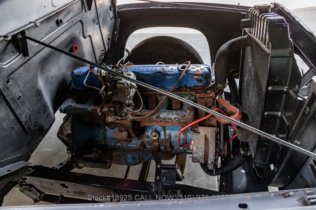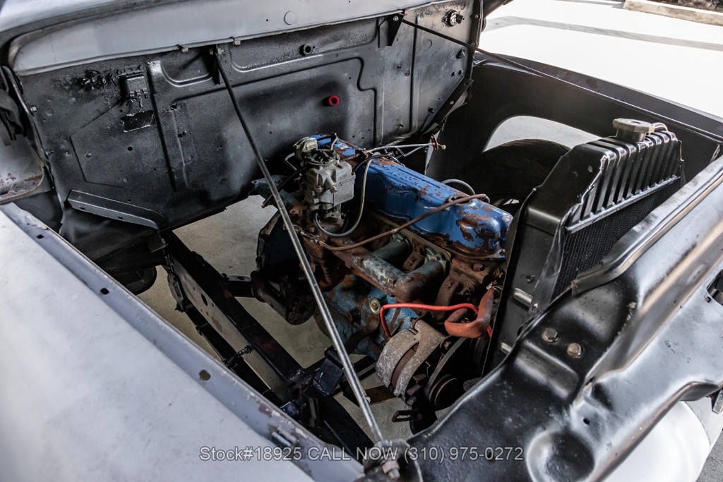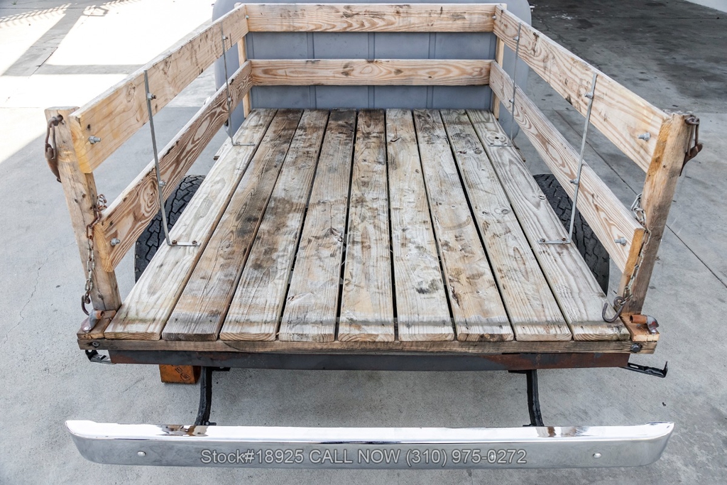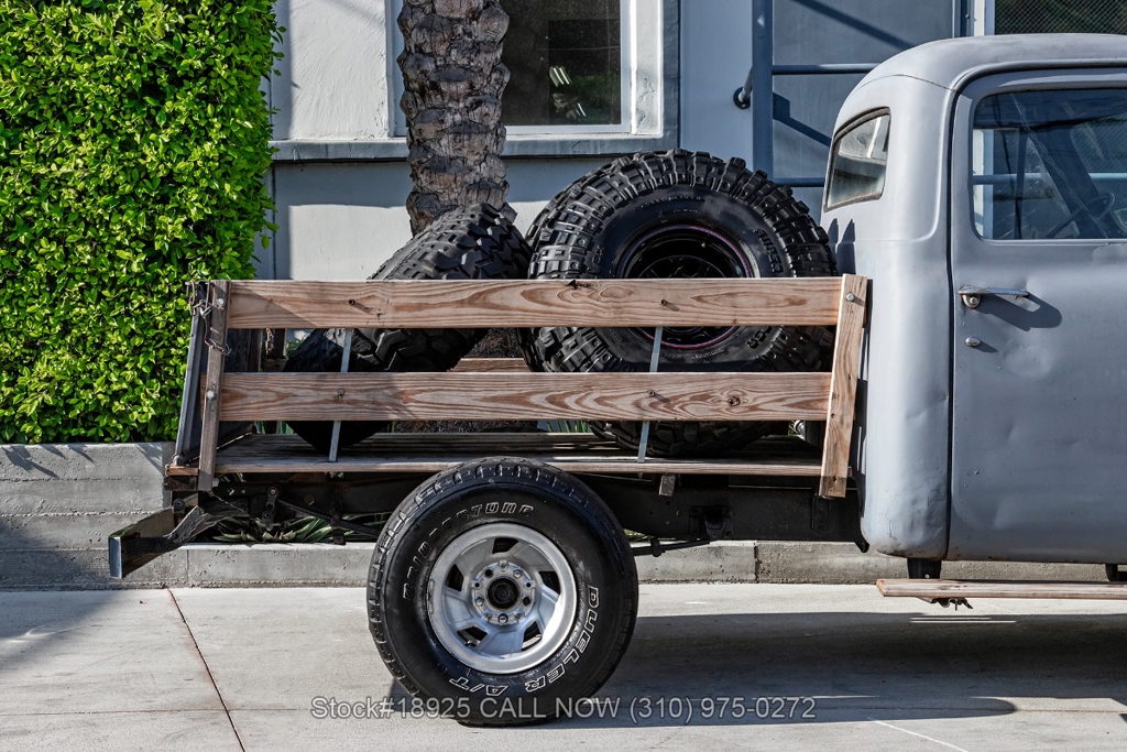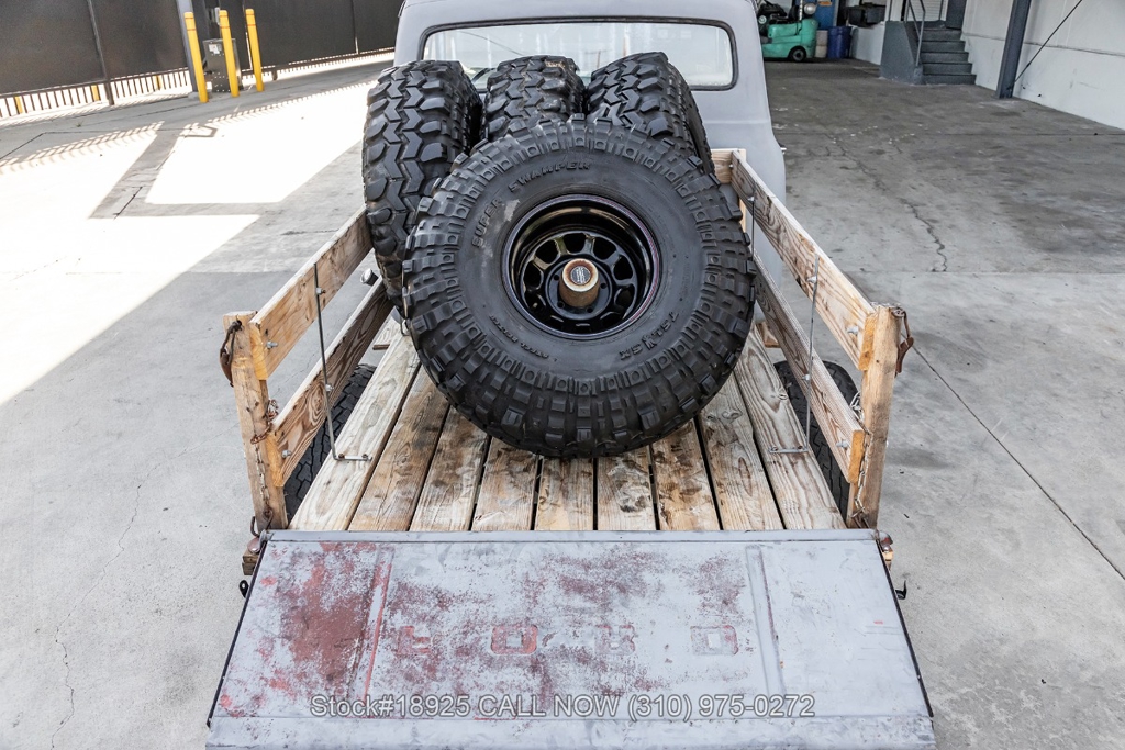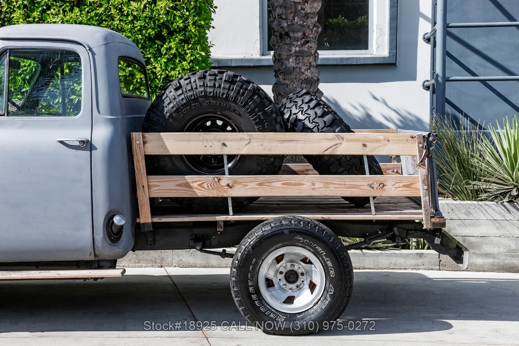 Equipped with a straight-six engine, single-barrel carburetor, drum brakes all the way around, chrome front bumpers, "Ford" lettering across the tailgate, Bridgestone tires, and 4 extra wheels on the truck bed. Featured amenities include comfortable bench seating, manual-crank windows, drive-side rearview mirror, and a three-spoke steering wheel. Note this pickup truck does not have a transmission