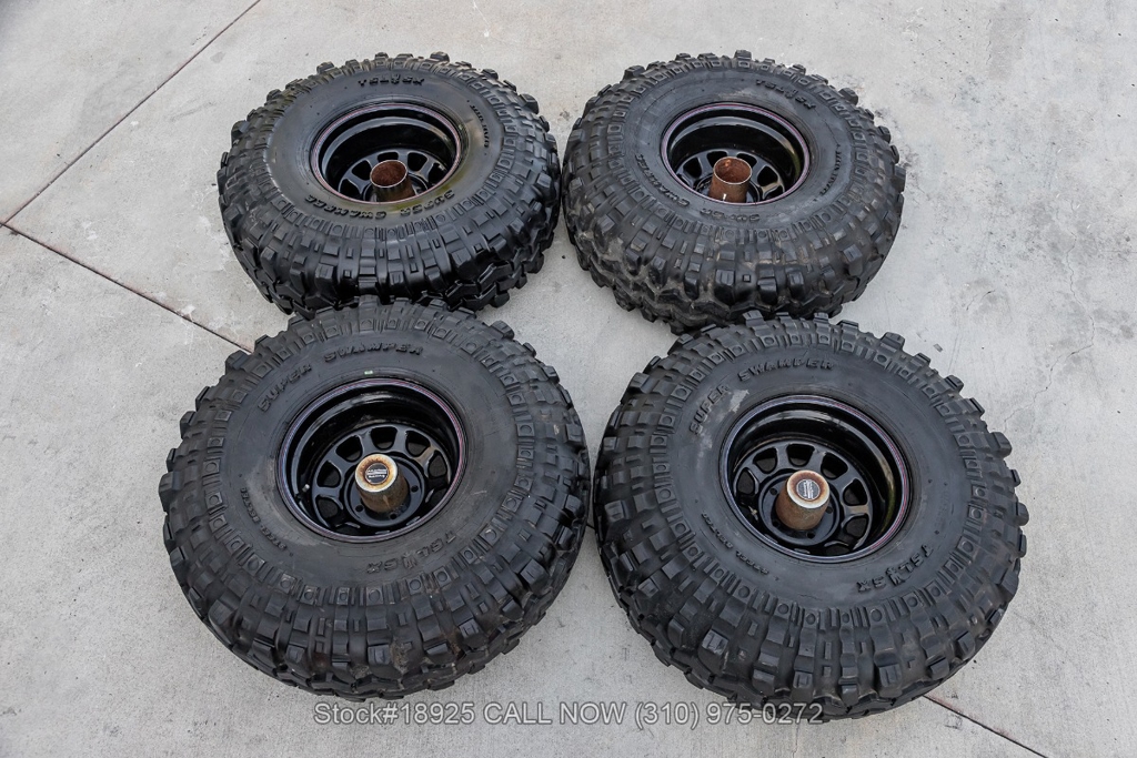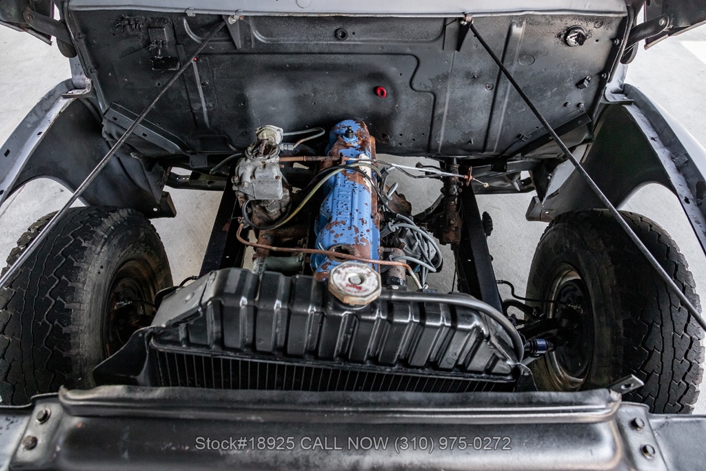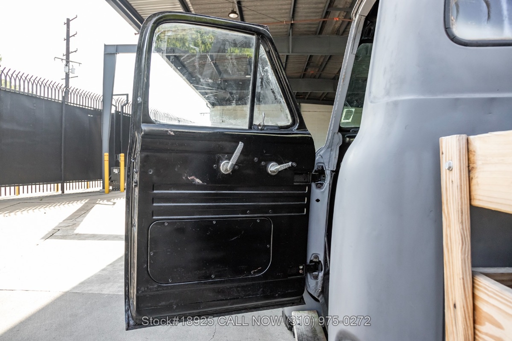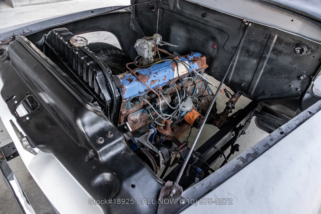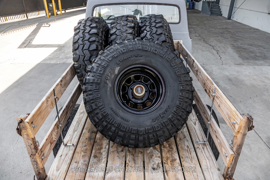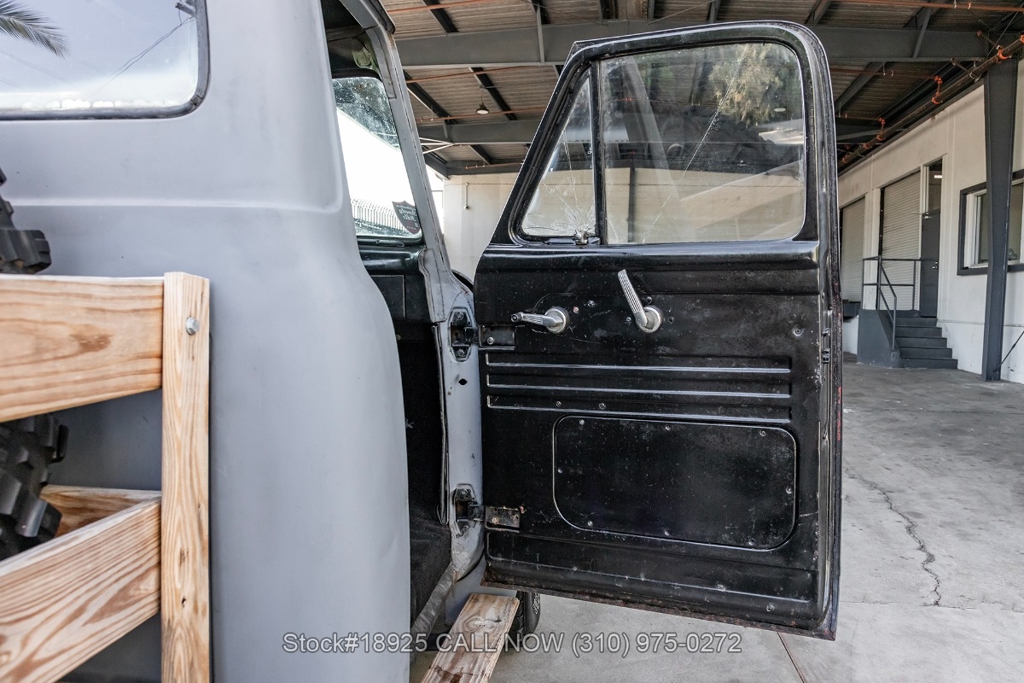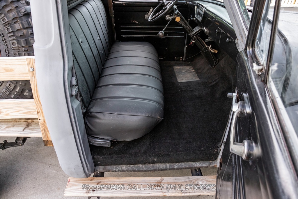 Equipped with a straight-six engine, single-barrel carburetor, drum brakes all the way around, chrome front bumpers, "Ford" lettering across the tailgate, Bridgestone tires, and 4 extra wheels on the truck bed. Featured amenities include comfortable bench seating, manual-crank windows, drive-side rearview mirror, and a three-spoke steering wheel. Note this pickup truck does not have a transmission
